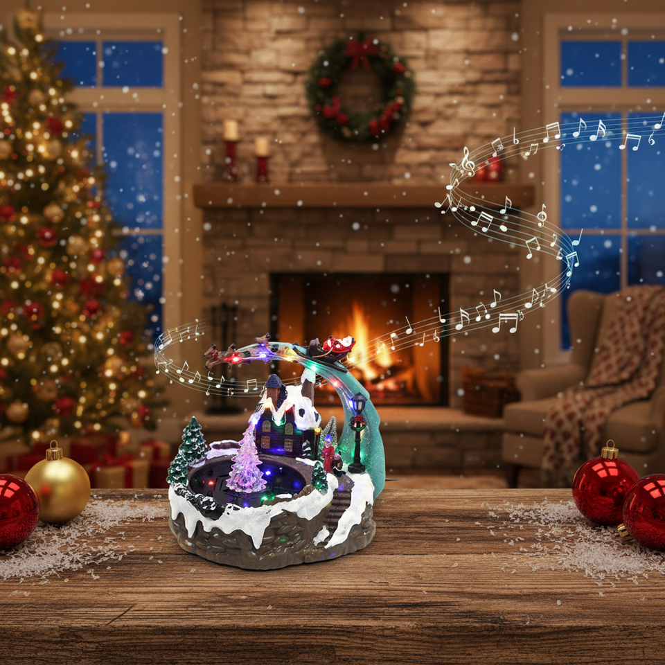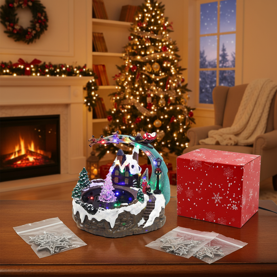 7\"X9.5\"X8.5\" Indoor Hanging Decoration 4pcs/Cs Metallic Christmas Ornament Tree Star Shape Lite Musical Feature Packaged Bags