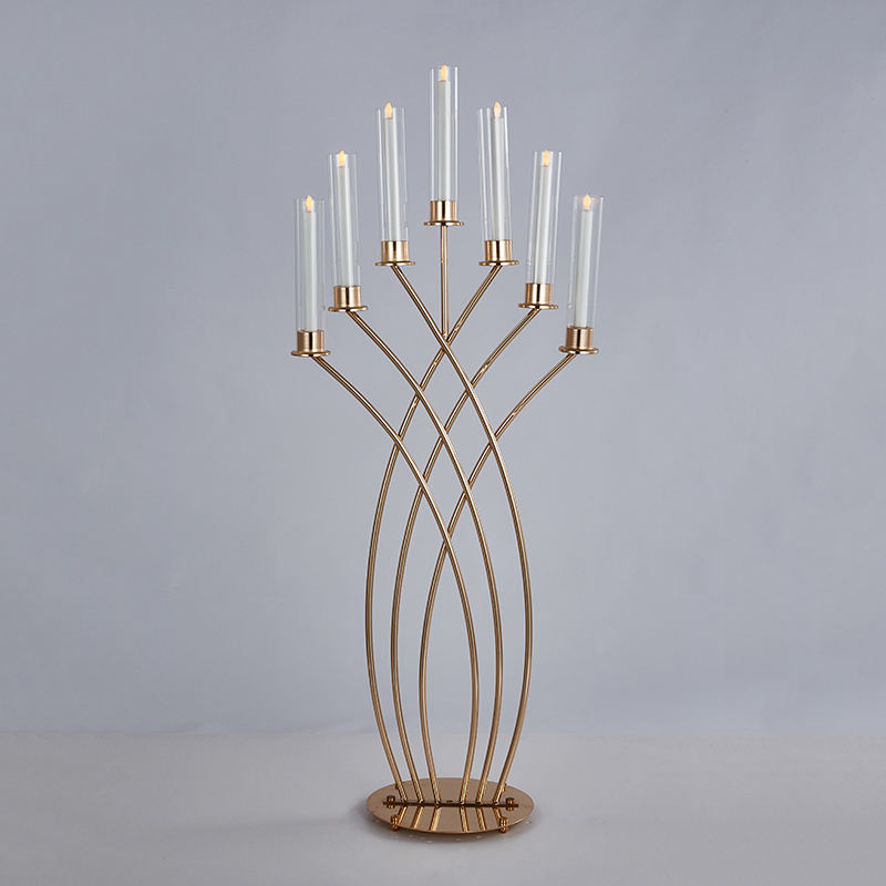 7-arm Metal Floor Candle Holder Gold Candelabra for Wedding Candelabrum Centerpiece Decor Candlestick