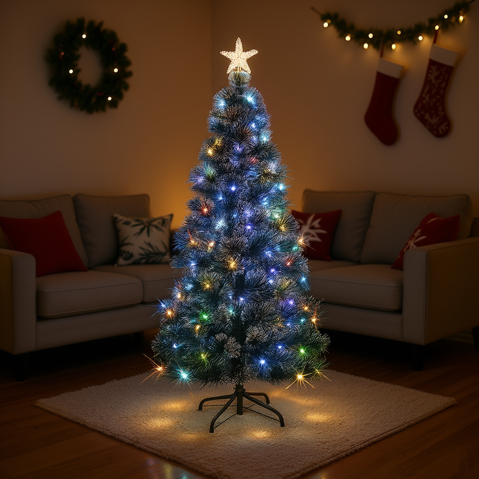 Christmas Tree 7 Ft Artificial Pine Pre Lit With 280 Multicolored Led Lights Indoor Decor Standing Base Easy Installation