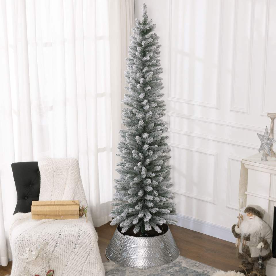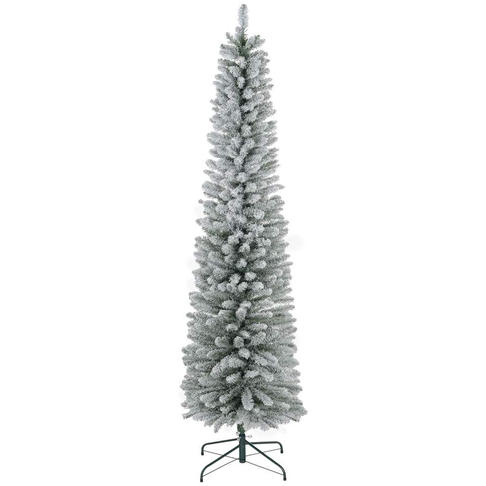 Albero di Natale Artificiale Realistico a Forma di Matita da 2,1 m con 405 Punte Innevate e Base in Metallo