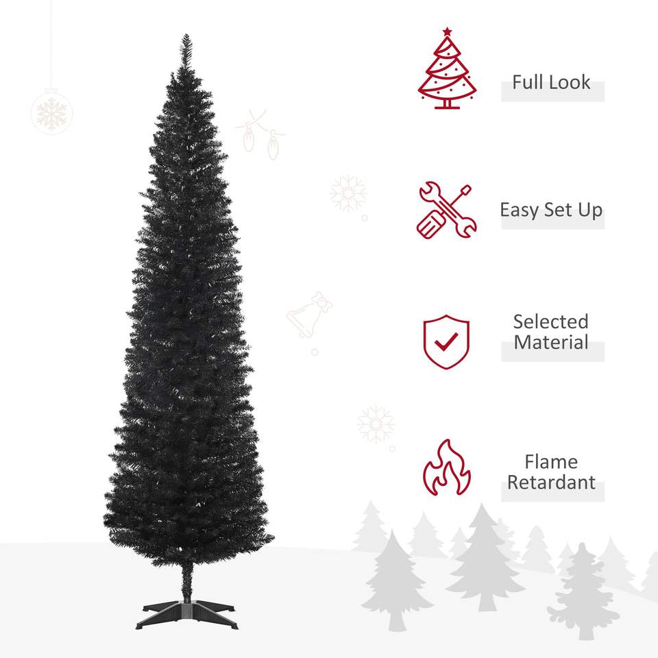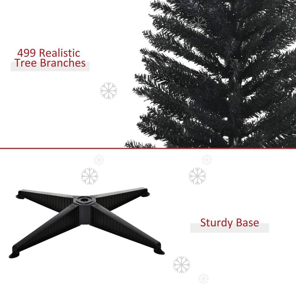 Albero di Natale Artificiale Nero Sottile da 2,1 m con 499 Rami Realistici e Supporto in Plastica