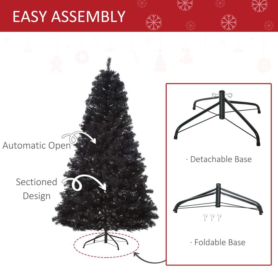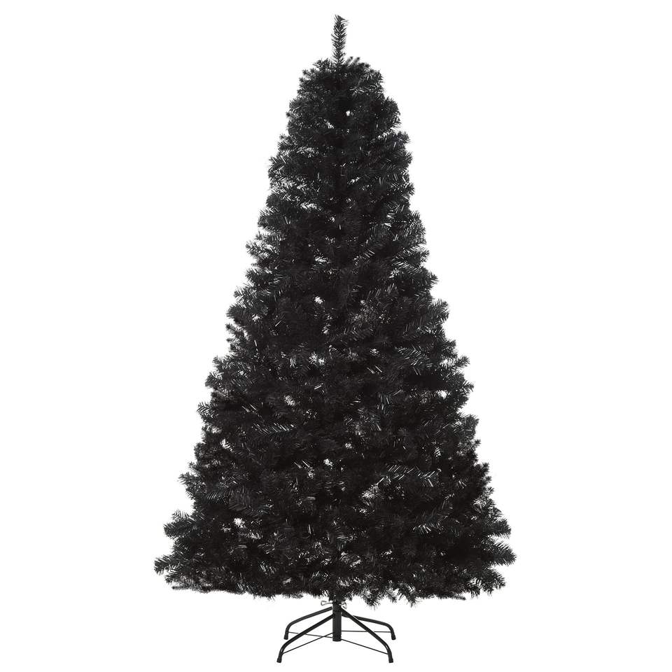 Albero di Natale Artificiale Douglas Fir Non Illuminato da 2,13 m con 1346 Punte, Rami Realistici, Stile Halloween Nero