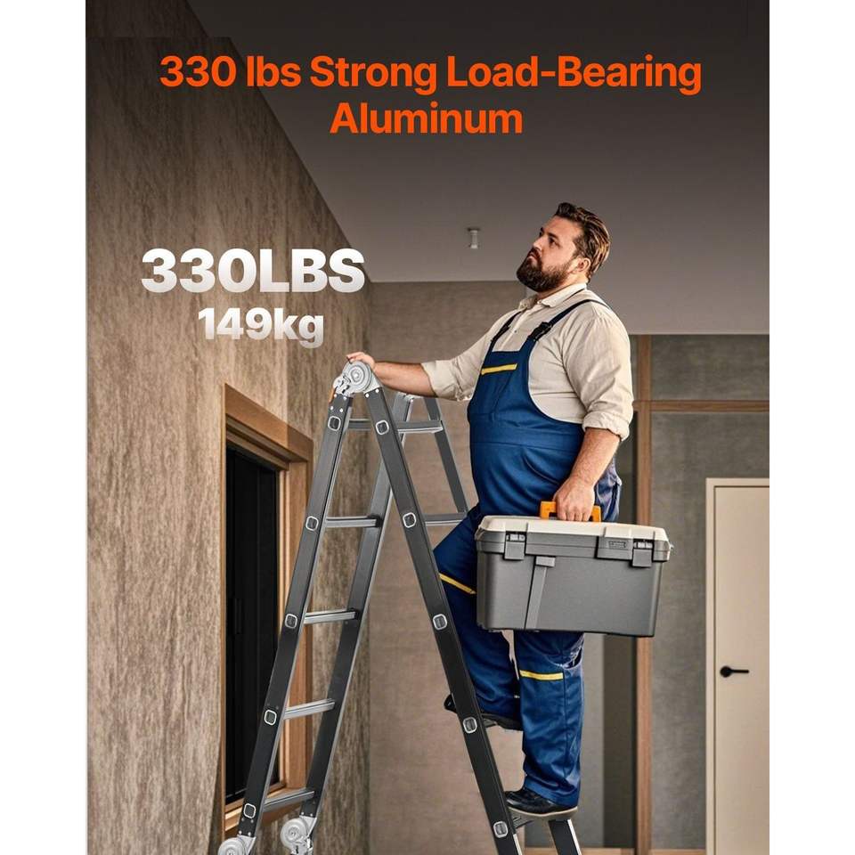 Scala Telescopica Pieghevole Multiuso 7-in-1 con 5 Gradini, Design Estensibile fino a 19 Piedi di Altezza, Telaio Rinforzato