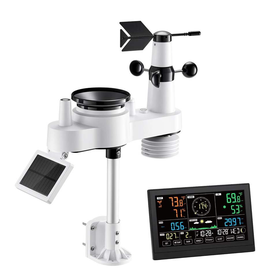 7-in-1 Wireless Solar Powered VA Display Weather Station 7.5-Inch Indoor and Outdoor Sensor with Rain Gauge Monitoring System