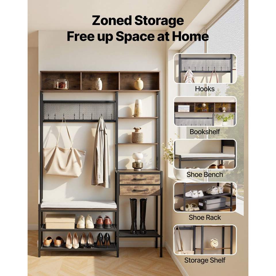 Appendiabiti autoportante 3-in-1 da 70,9 pollici con 2 cassetti, panca scarpiera e libreria per l'ingresso di casa