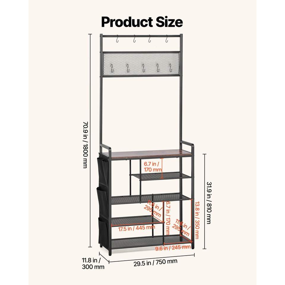 70.9 in Freestanding 4-Tier Shoe Rack Organizer with Hooks Side Pocket Wire Shelf Coat Stand and Shoe Storage Hall Tree