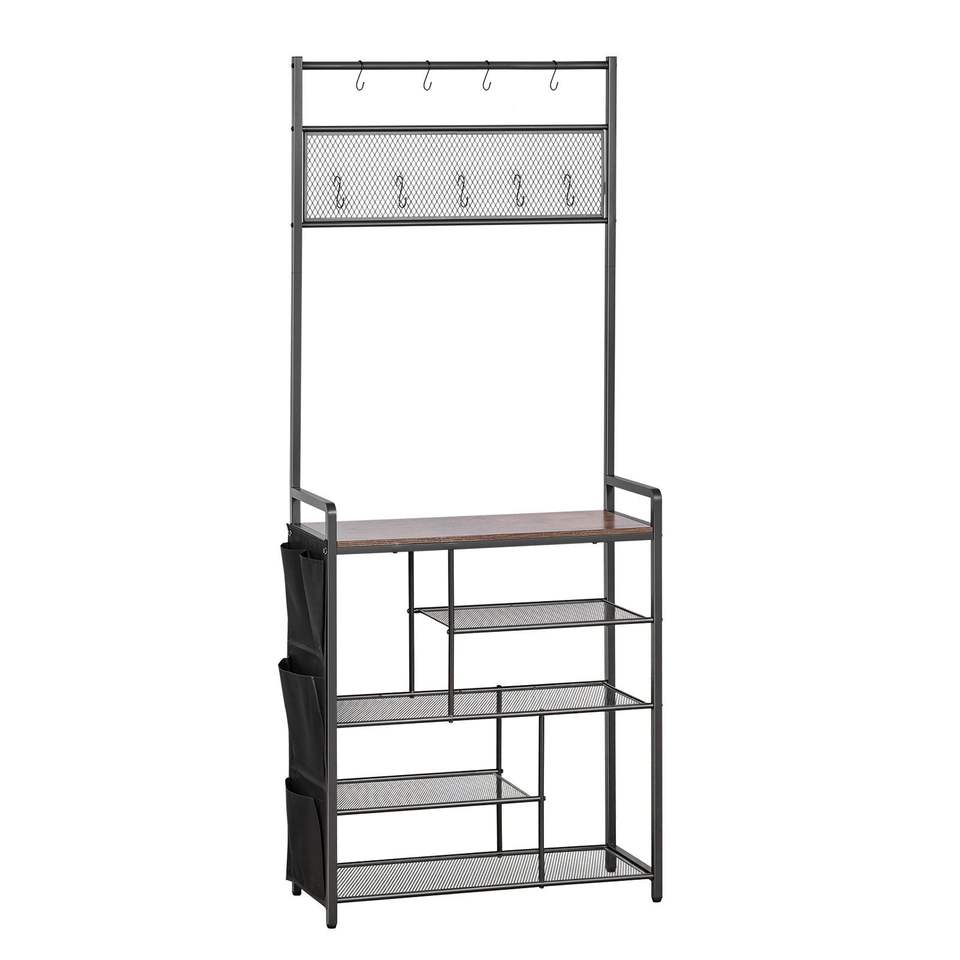 Scarpiera autoportante a 4 livelli da 70,9 pollici con ganci, tasca laterale, scaffale in filo metallico, appendiabiti e portaoggetti per scarpe