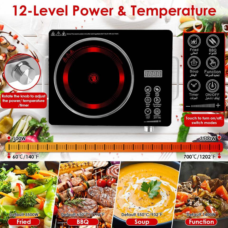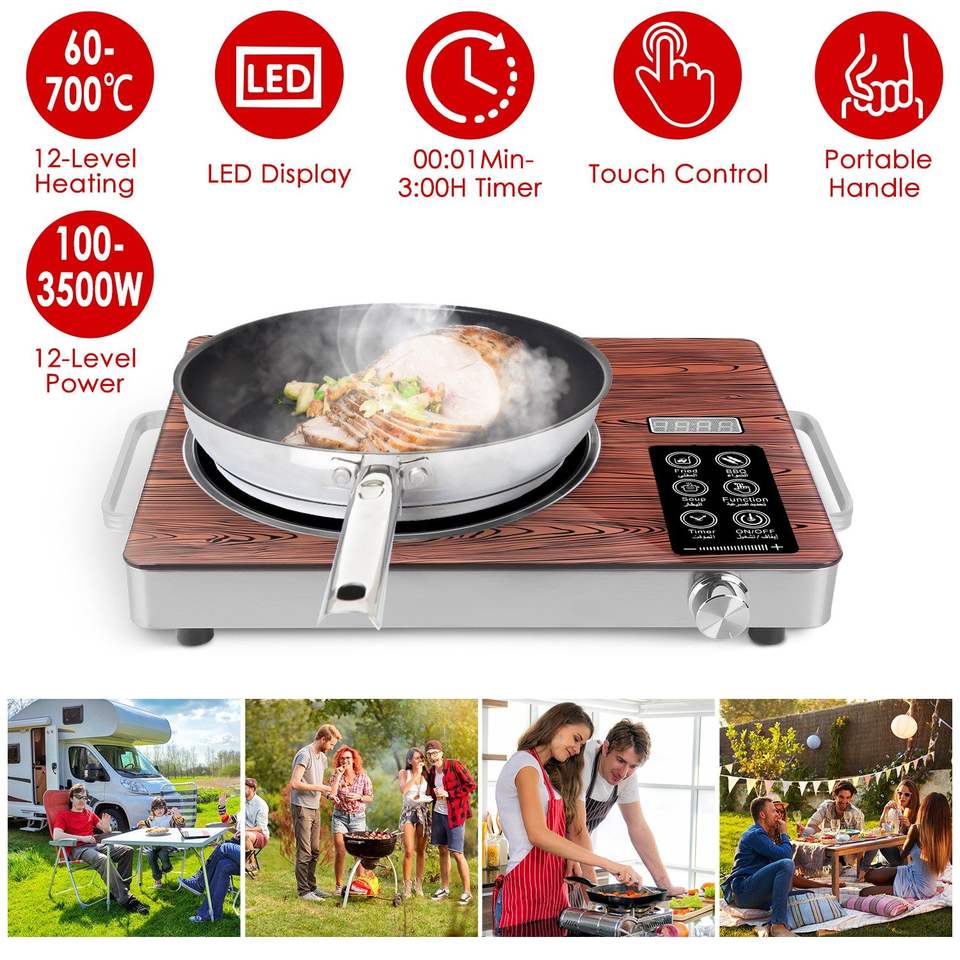 Fornello Elettrico Doppio in Ceramica da 7000W per Campeggio, Opzione Singola in Ceramica da 3500W con 3 Scelte di Colore