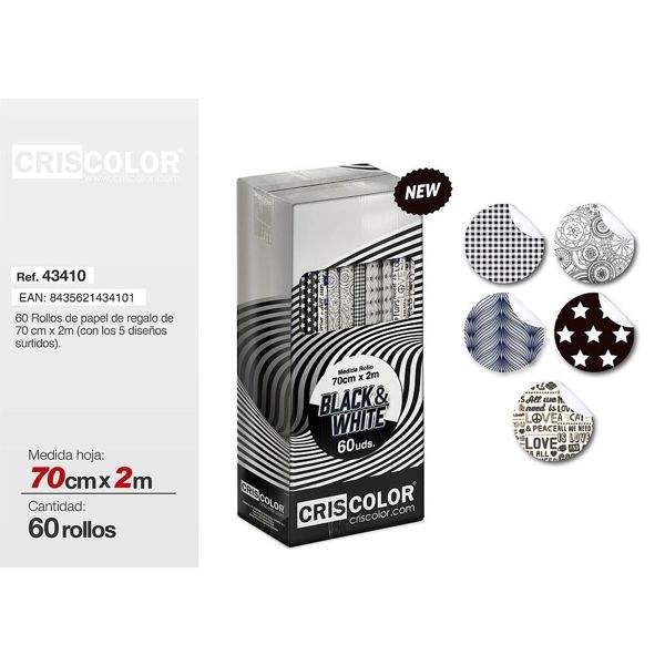 70CMX2M Eco-Friendly Black & White Roll Gift Wrapping Paper Premium Packaging for Unique and Elegant Presentation