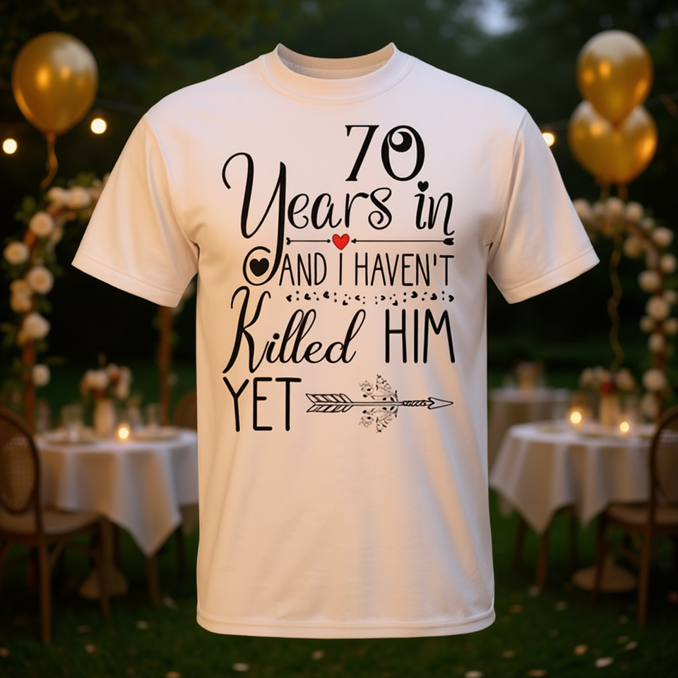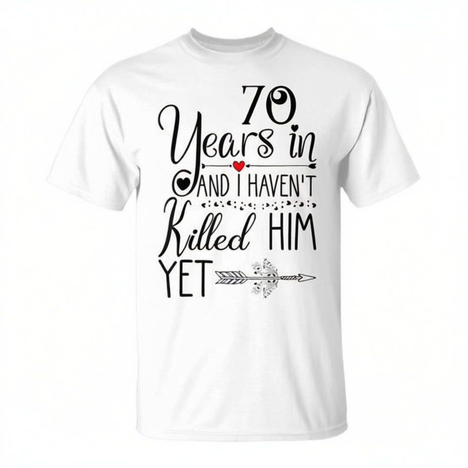 T-shirt per il 70° anniversario del matrimonio, regalo per lei, 70 anni di matrimonio, manica corta, girocollo, stampa digitale, per donna adulta