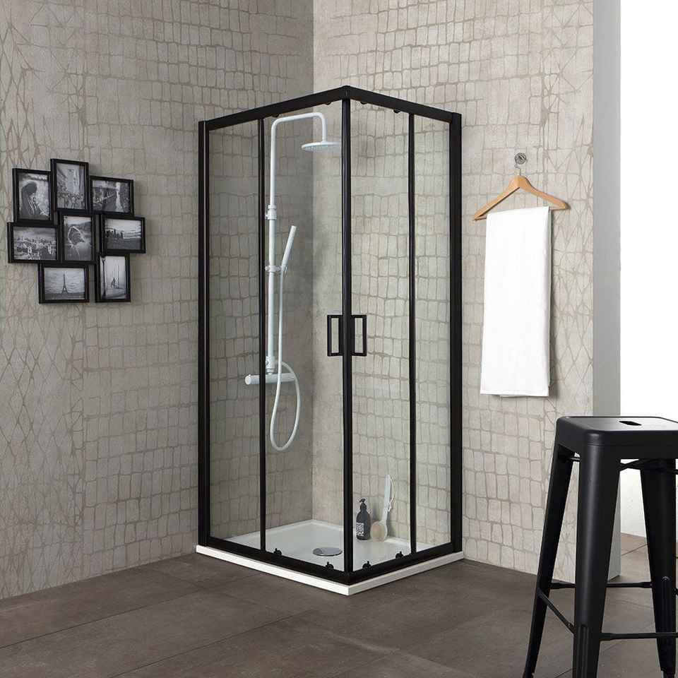 Box doccia 70x70 con telaio nero opaco e vetro Sky Glass da 6 mm
