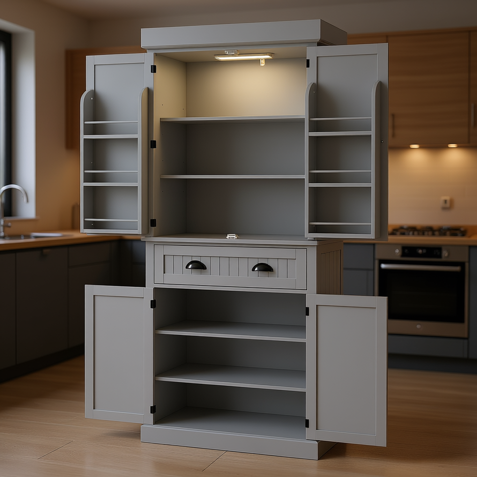 Mobile Dispensa da Cucina 71 Pollici Grigio con Luci LED, 6 Ante, Cassetti e Ripiani Regolabili - Design Moderno
