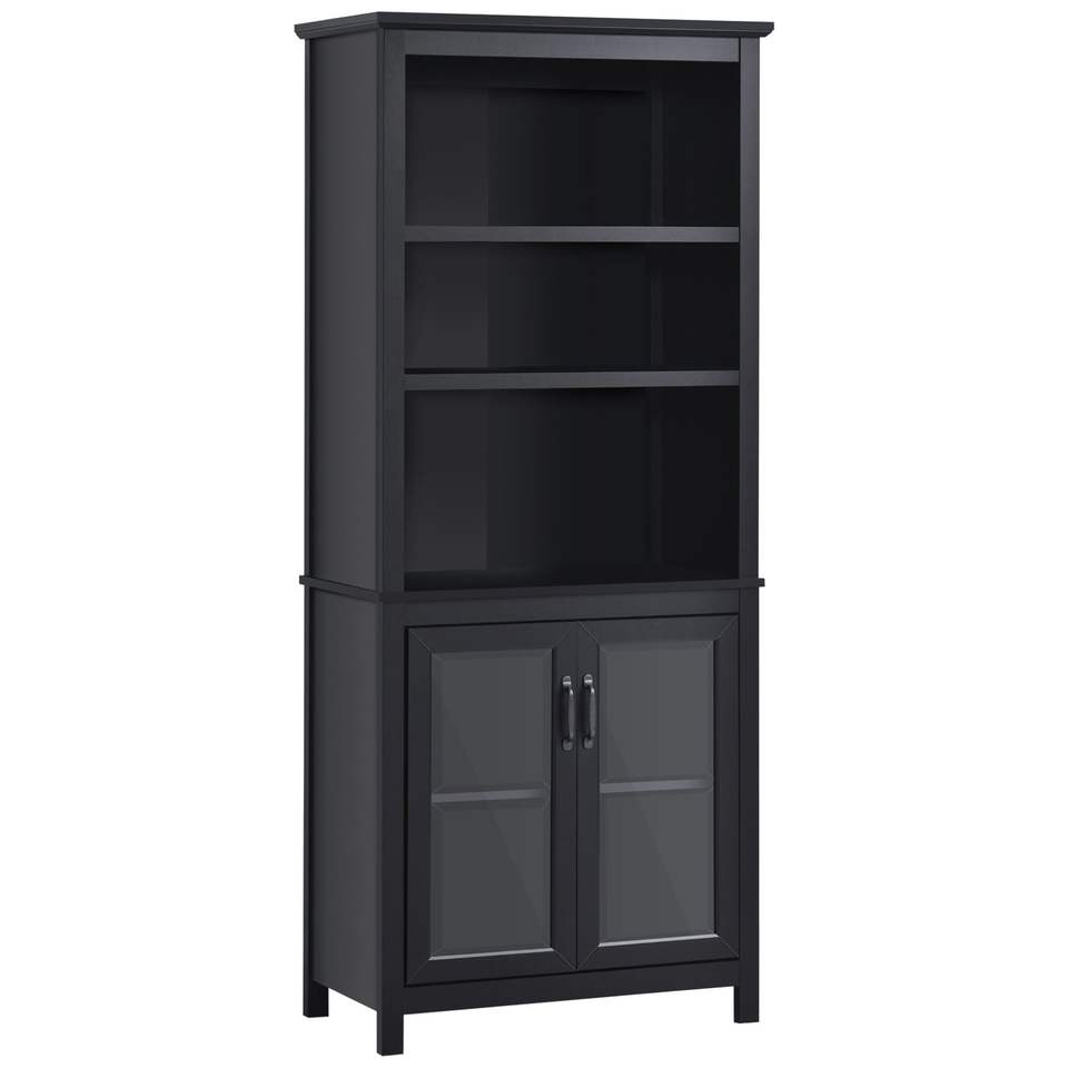 Armadietto per libreria alto 71 \ "con ripiani regolabili e porte in vetro per ufficio cucina soggiorno in colore nero