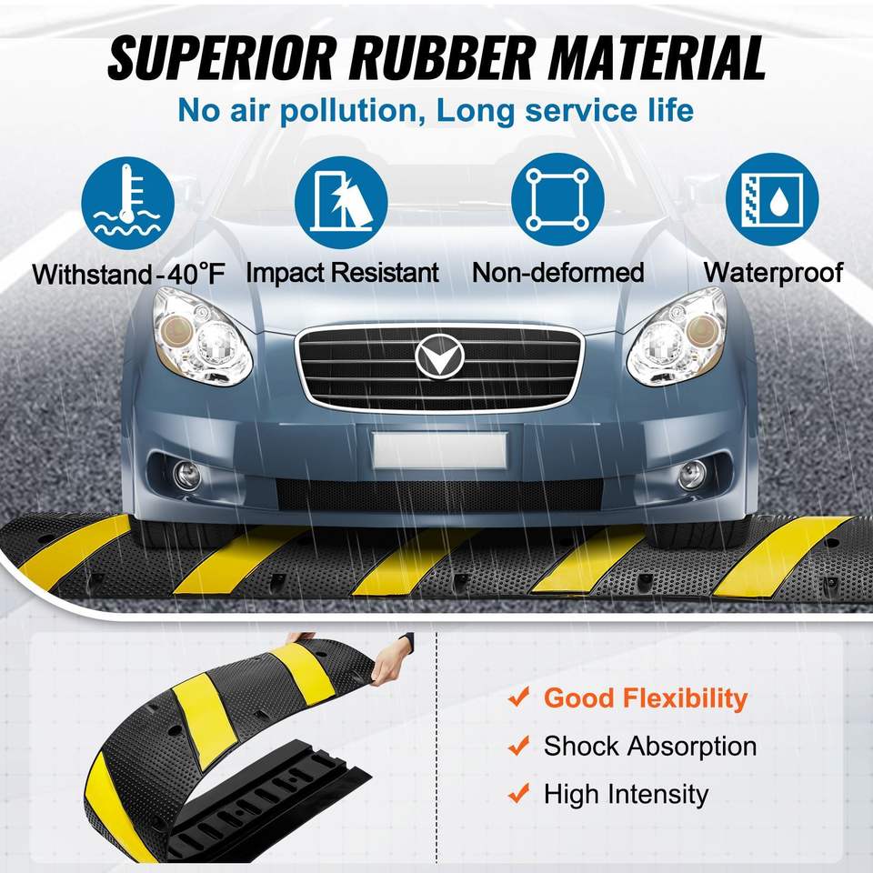 Dissuasore di velocità in gomma a doppio canale da 72'' con striscia riflettente gialla brillante, resistente, supporta 22.000 libbre