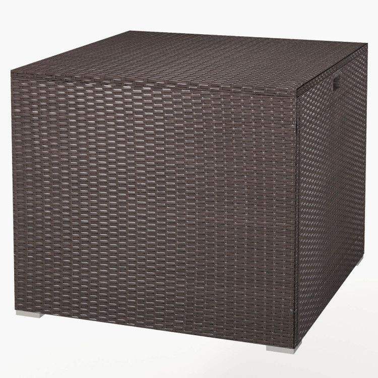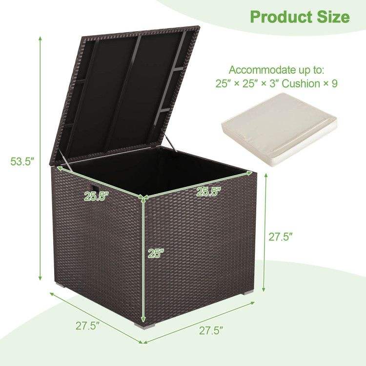 Contenitore da Esterno in Rattan da 72 Galloni con Rivestimento Interno con Cerniera e Asta Pneumatica Solida, Soluzione di Stoccaggio Resistente alle Intemperie e Durevole