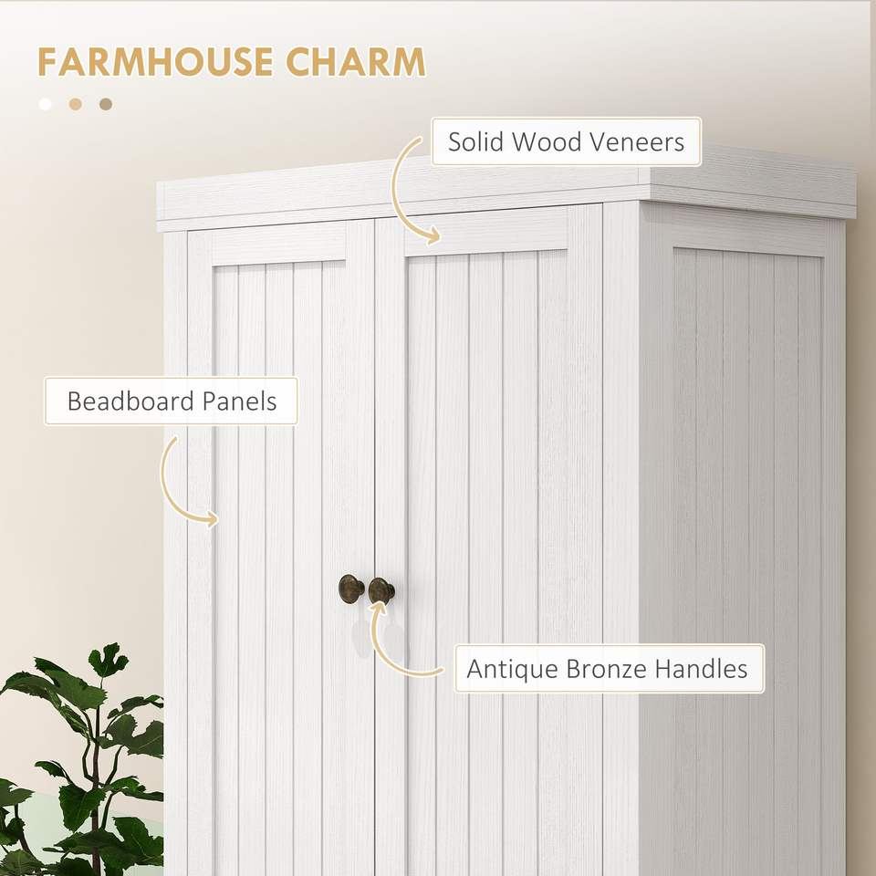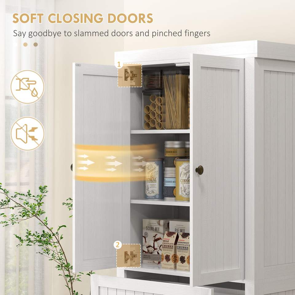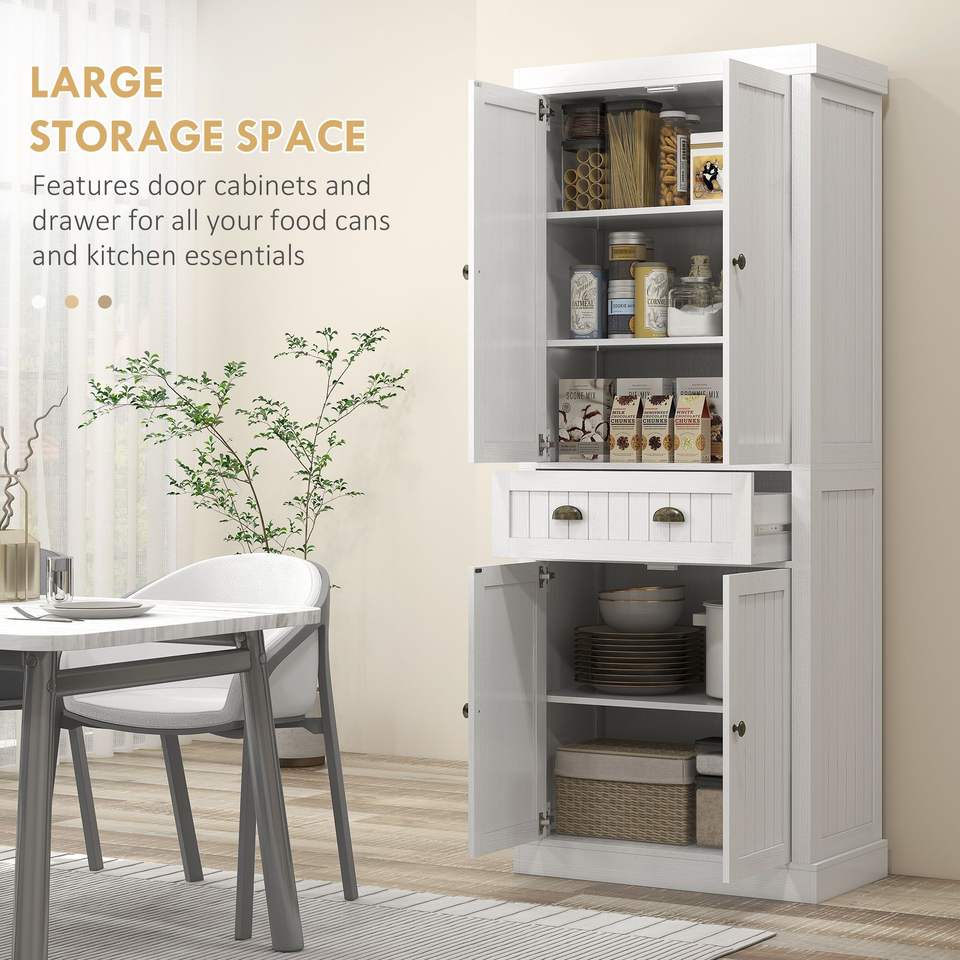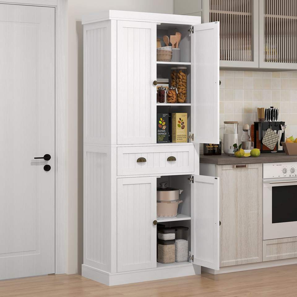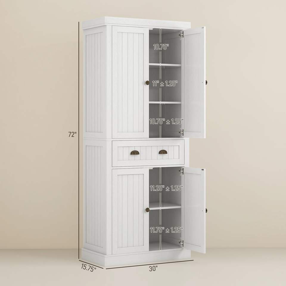 Armadio da Cucina Bianco Anticato da 72 Pollici con 4 Ante, 2 Ripiani Regolabili e Cassetto