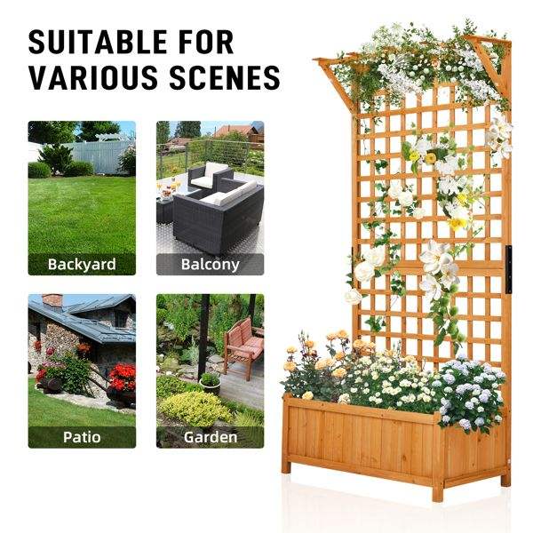 72 Inch Height Metal Garden Bed with Trellis Flower Pots & Planters for Outdoor Use