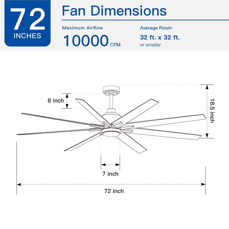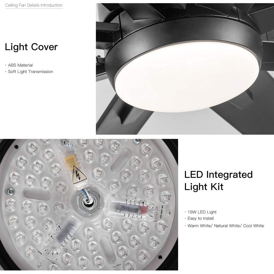 Ventilatore da Soffitto a LED Integrato da 72 Pollici con Motore DC e Telecomando, Colore Nero