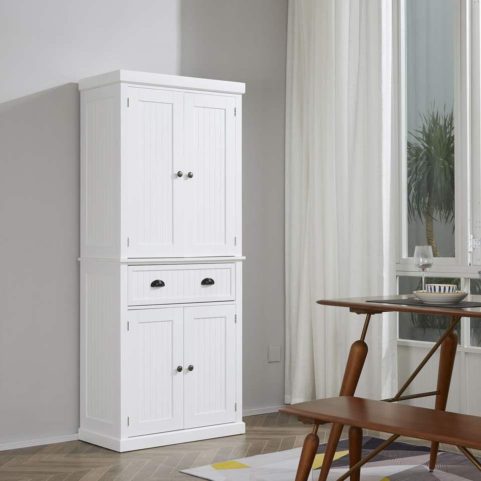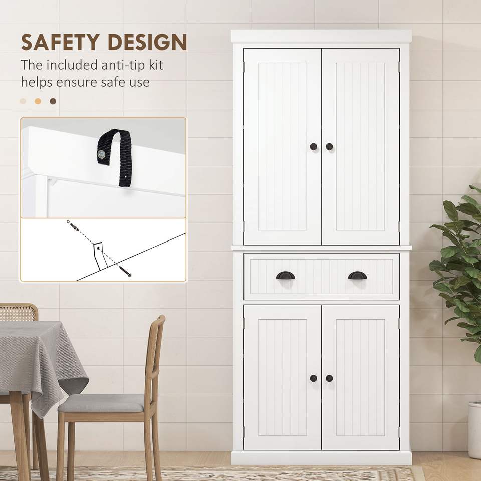 Armadio Dispensa Bianco da 72 Pollici, Mobile da Cucina Indipendente con 4 Ante Regolabili, Cassetto e Ripiani