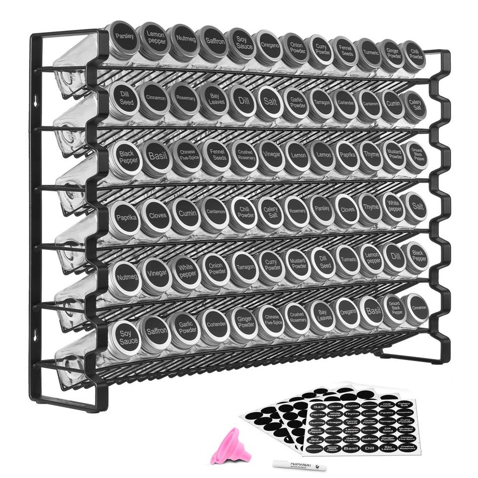 Set Completo da 72 Pezzi per Organizzazione Cucina: Barattoli Vuoti per Spezie con Coperchi, Imbuto e Etichette per Spezie, Organizzatore per Armadietto e Stagionati
