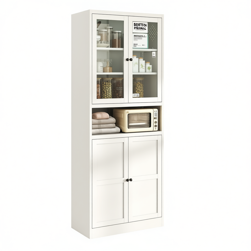 Mobile da cucina bianco con ante in vetro, alto 72 pollici, autoportante, per cucina e bagno