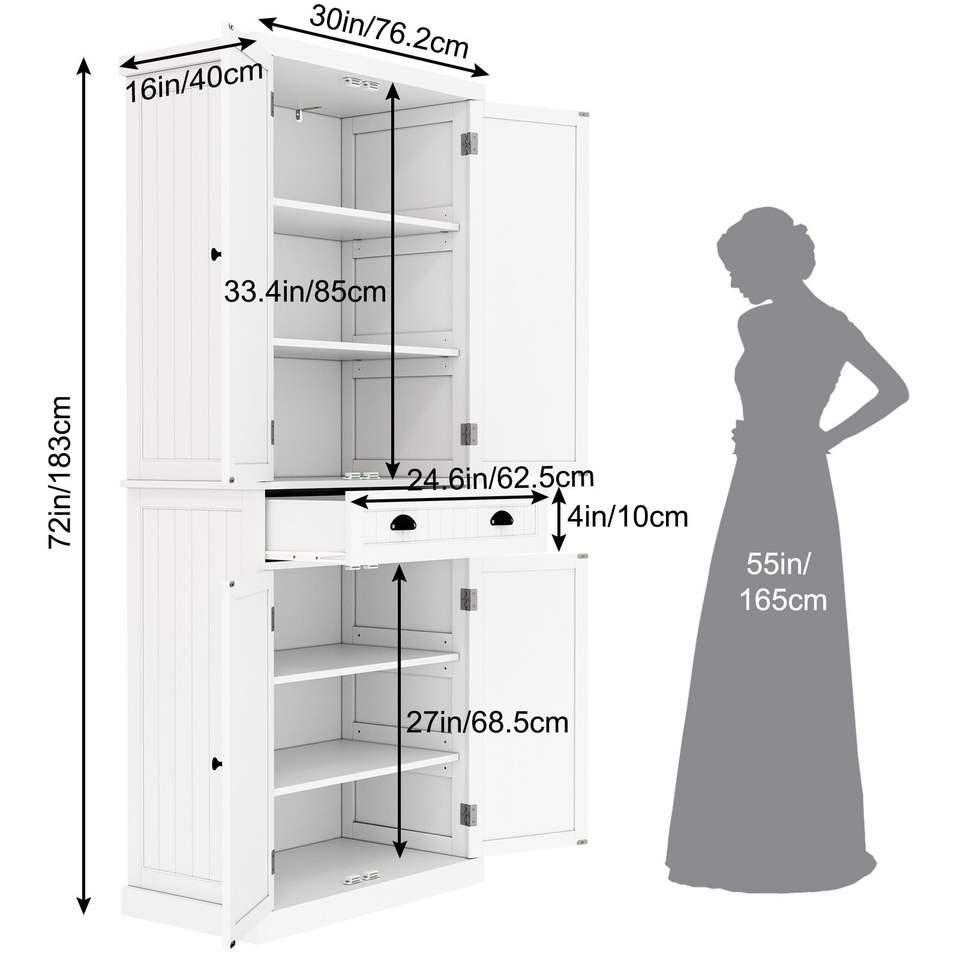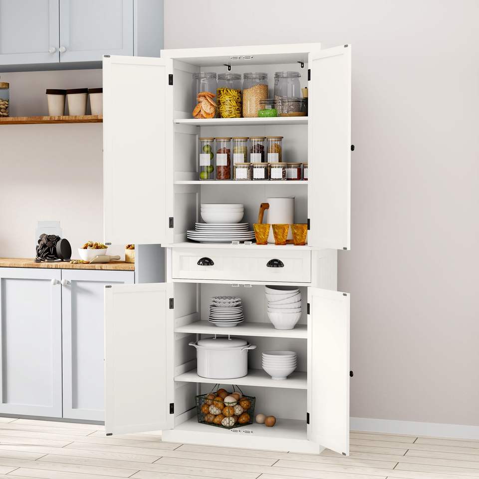 Armadio dispensa da cucina bianco alto 72 pollici con ripiani regolabili e cassetto, organizer autoportante
