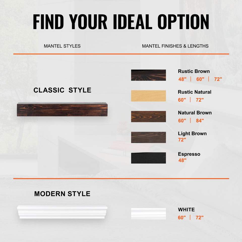 Mensola per Caminetto in Legno Naturale 183 x 20 x 13 cm, Montaggio a Parete, Stile Rustico, Capacità di Carico 22 kg, Scaffali Espositivi
