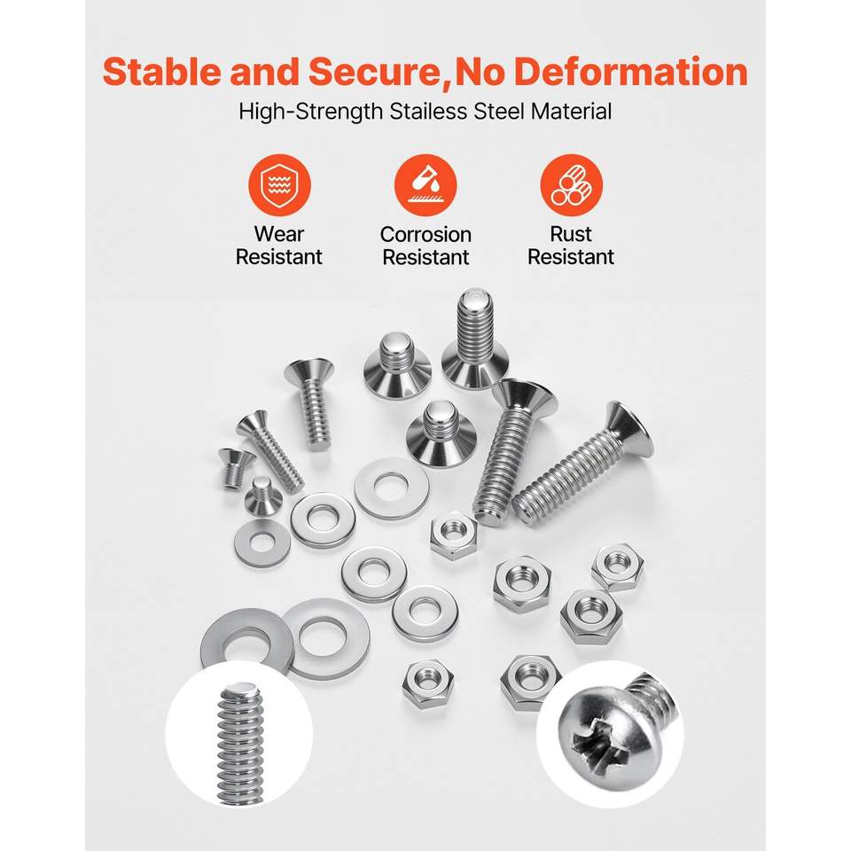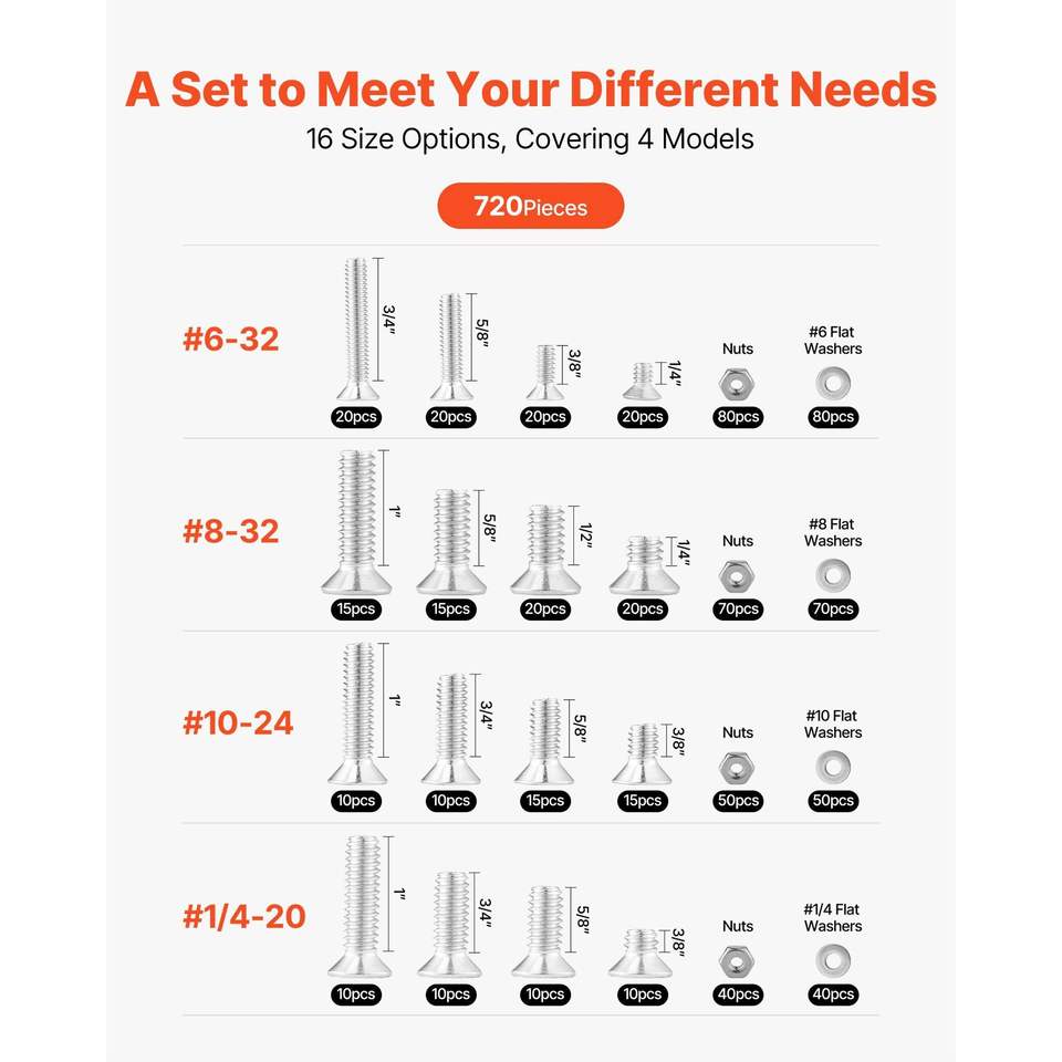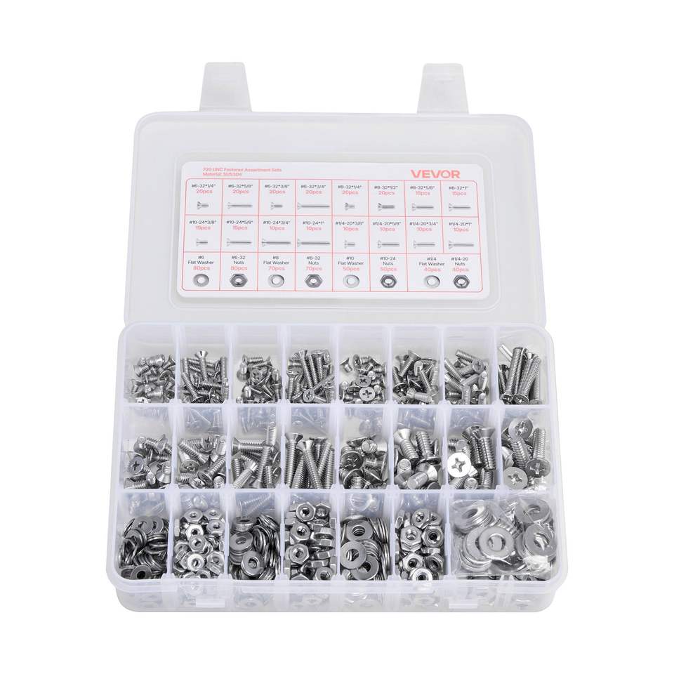 Kit Assortito di 720 Viti Imperiali, Rondelle Piatte, Bulloni e Dadi in Acciaio Inossidabile 6-328-3210-241/4-20 per Mobili