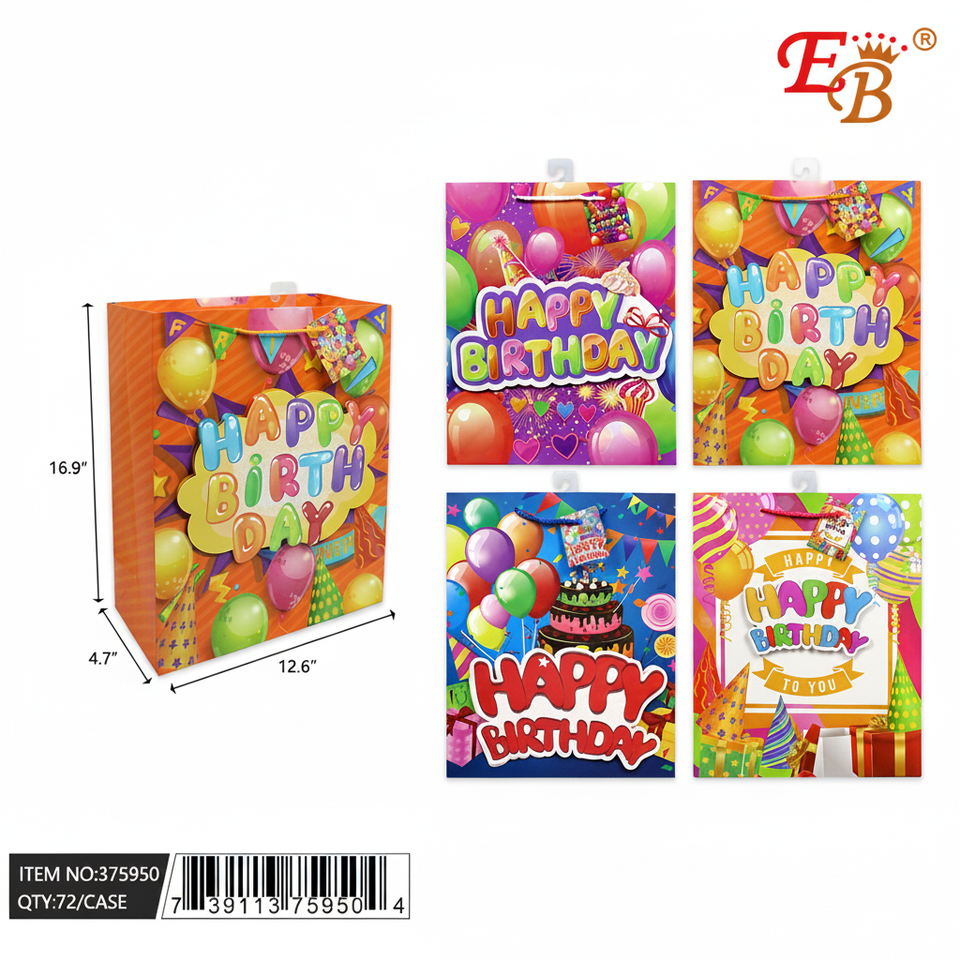 72PCS/CS 12.6\"X17\"X4.7\" Birthday Gift Bag Party Favors