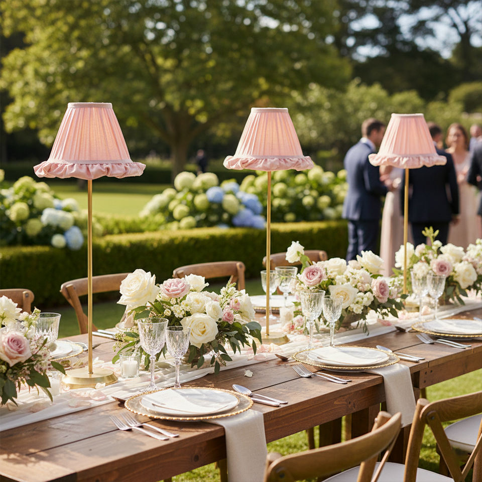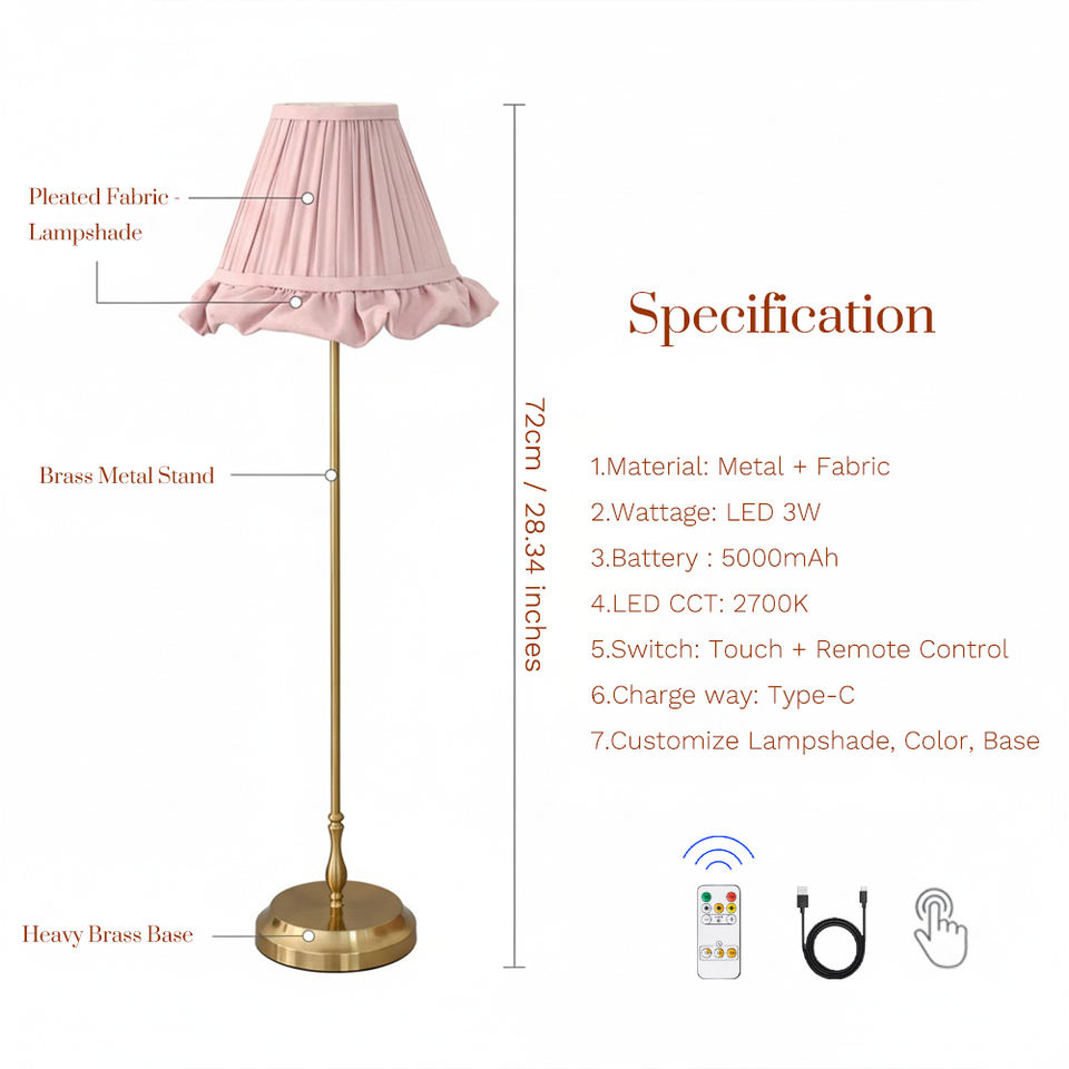 Lampada da Tavolo in Tessuto Senza Fili Alta 72cm con Telecomando Ricaricabile e Paralume Plissettato per Decorazioni di Matrimoni ed Eventi