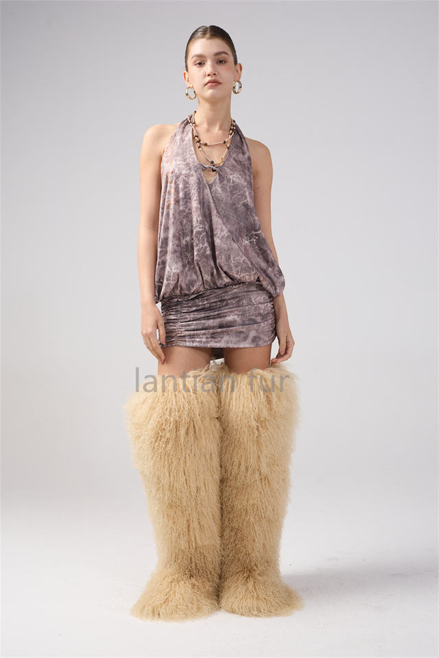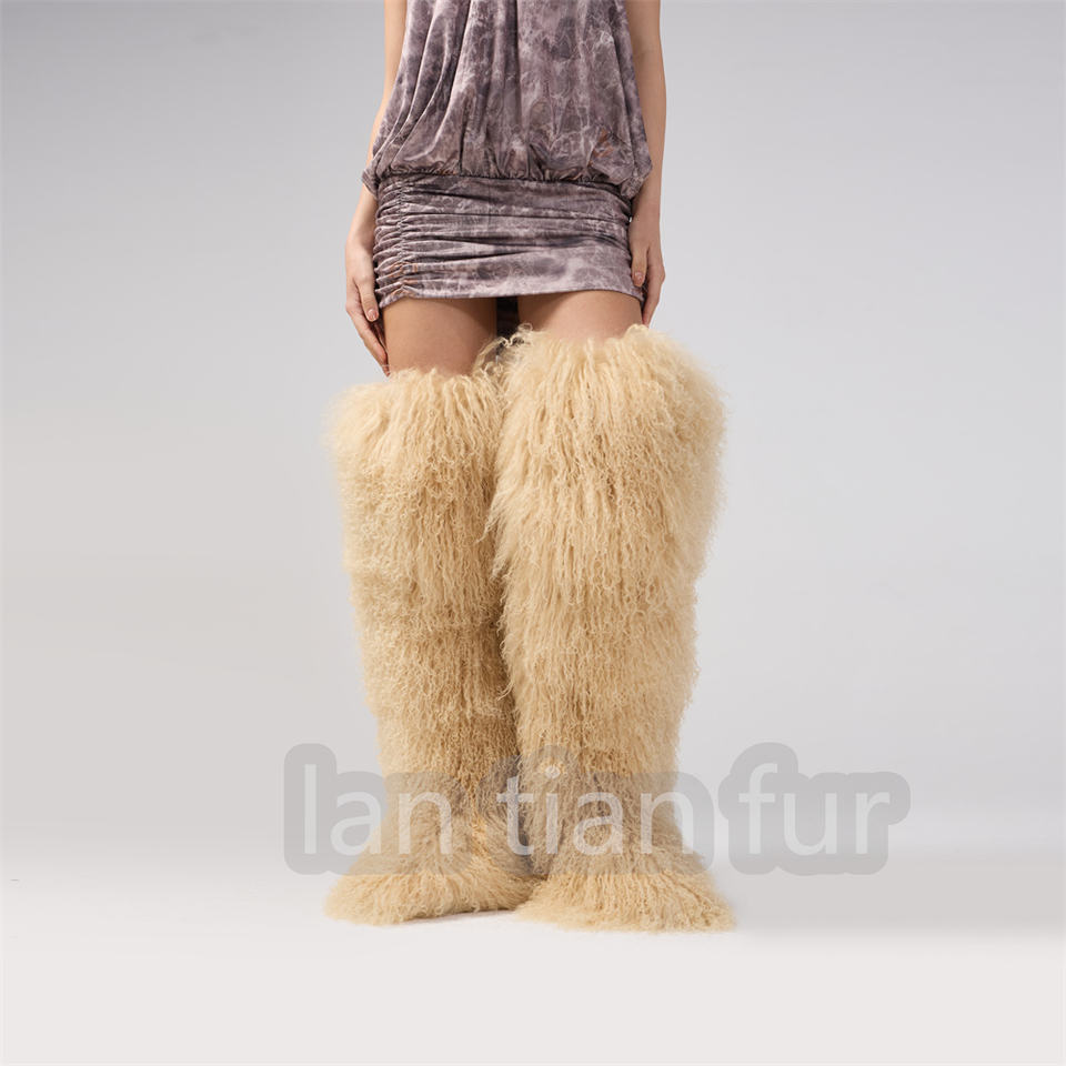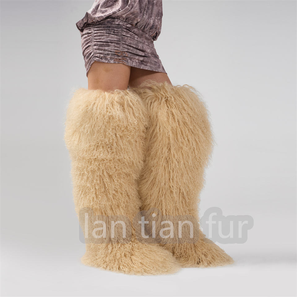 72cm Womens Real Mongolian Fur Over Knee Fur Boots Winter Warm Inside