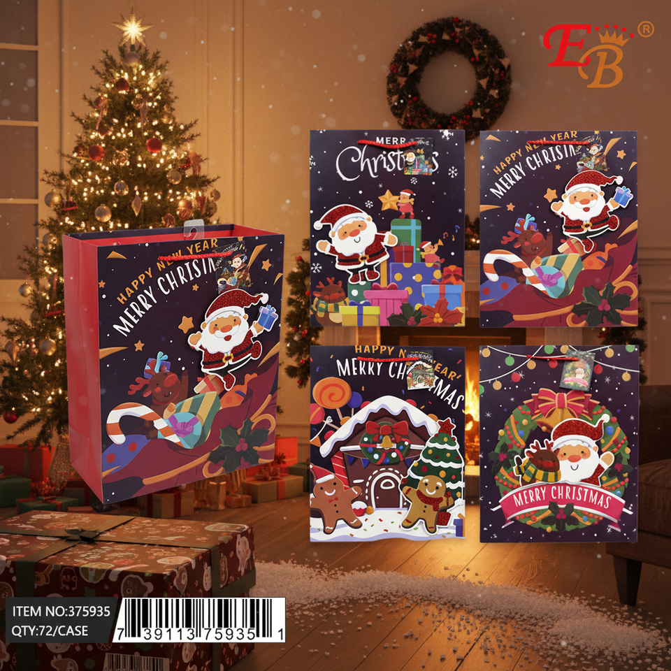 72pcs/CS 12.6\"X16.9\"X4.7\" Christmas Gift Bag Holiday Supplies for Festive Decorations