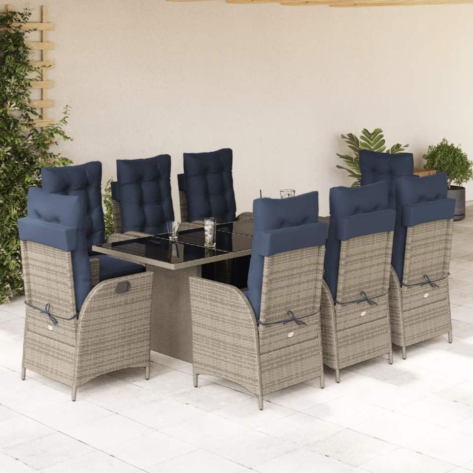 Set da Pranzo da Giardino in Rattan Grigio per 8 Persone, Resistente alle Intemperie, Arredamento da Esterno