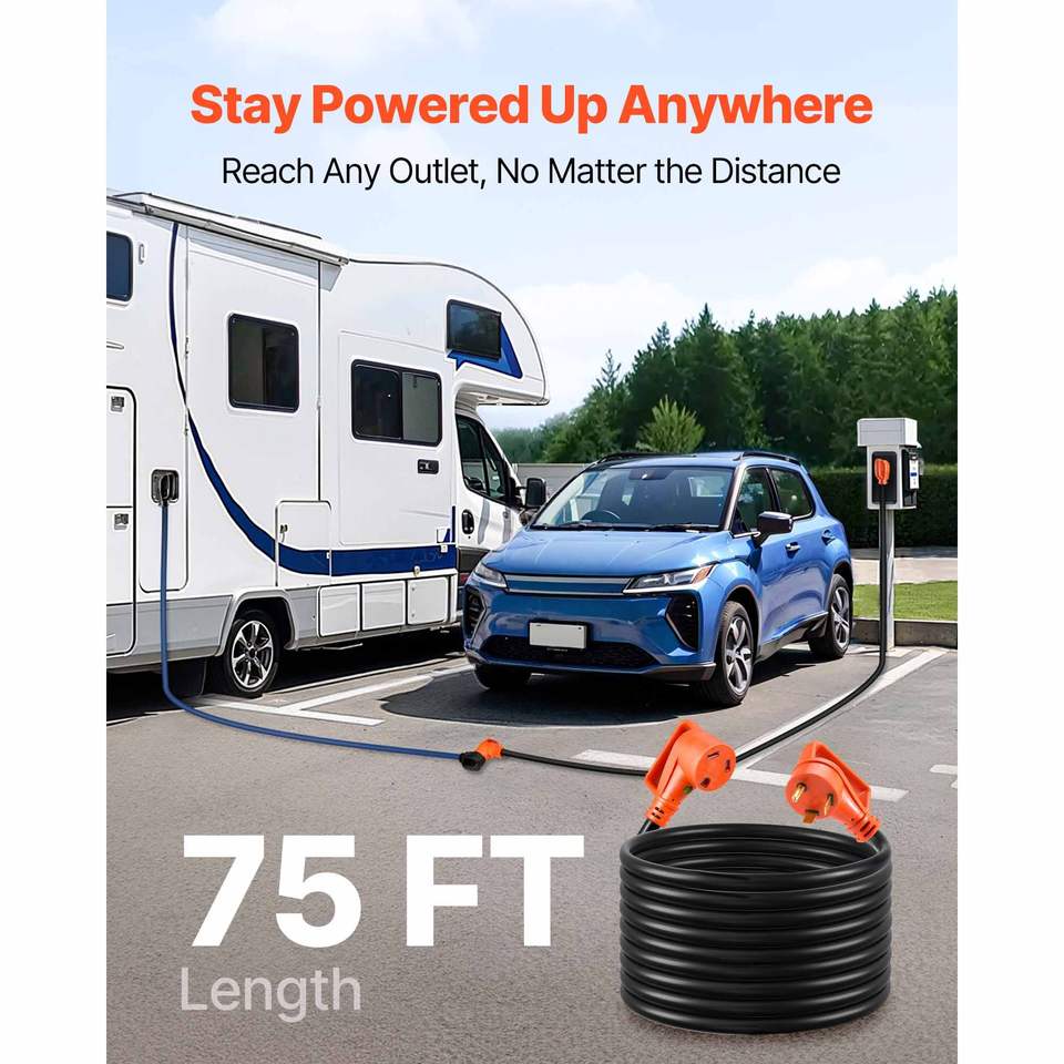 Cavo di prolunga per camper da 75 piedi con LED, 30 Amp 125V 2500W, cavo STW 10/3 per impieghi gravosi, spina maschio NEMA TT-30P e spina femmina NEMA TT-30R