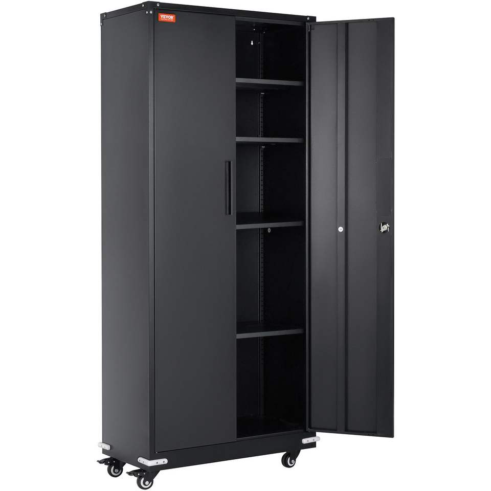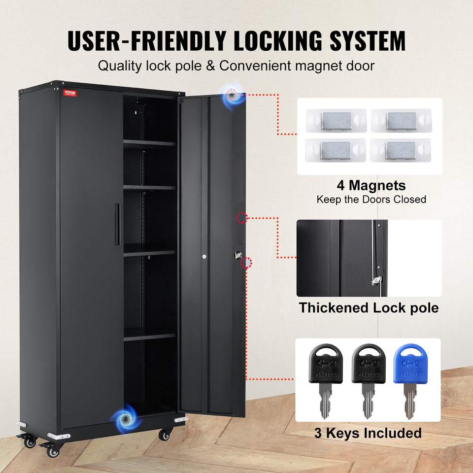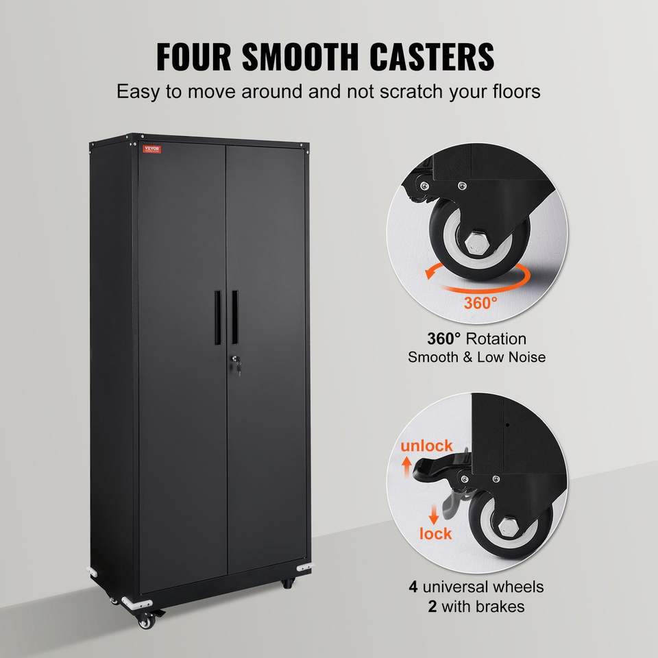 Armadio Metallico con Serratura da 75 Pollici, 4 Ripiani Regolabili, 2 Porte Magnetiche, Capacità 200 Libbre per Ripiano, Scaffali per Garage con Ruote