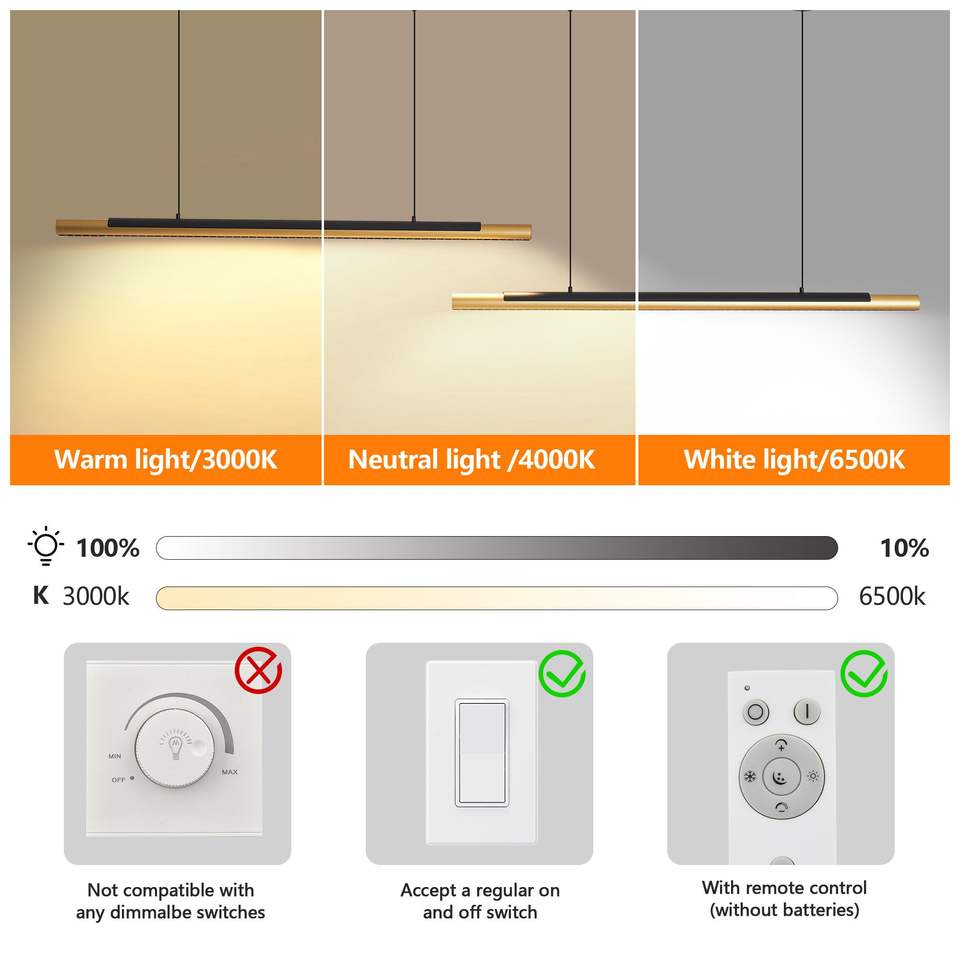 Lampadario a Sospensione LED Moderno Nero e Oro da 75 Pollici, Design Elegante a Doppio Tubo, Regolabile per Sala da Pranzo, Cucina, Soggiorno