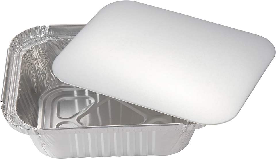 750ml Disposable Aluminum Foil Tray with Paper Board Lids Oblong Foil Pans with Lid Covers