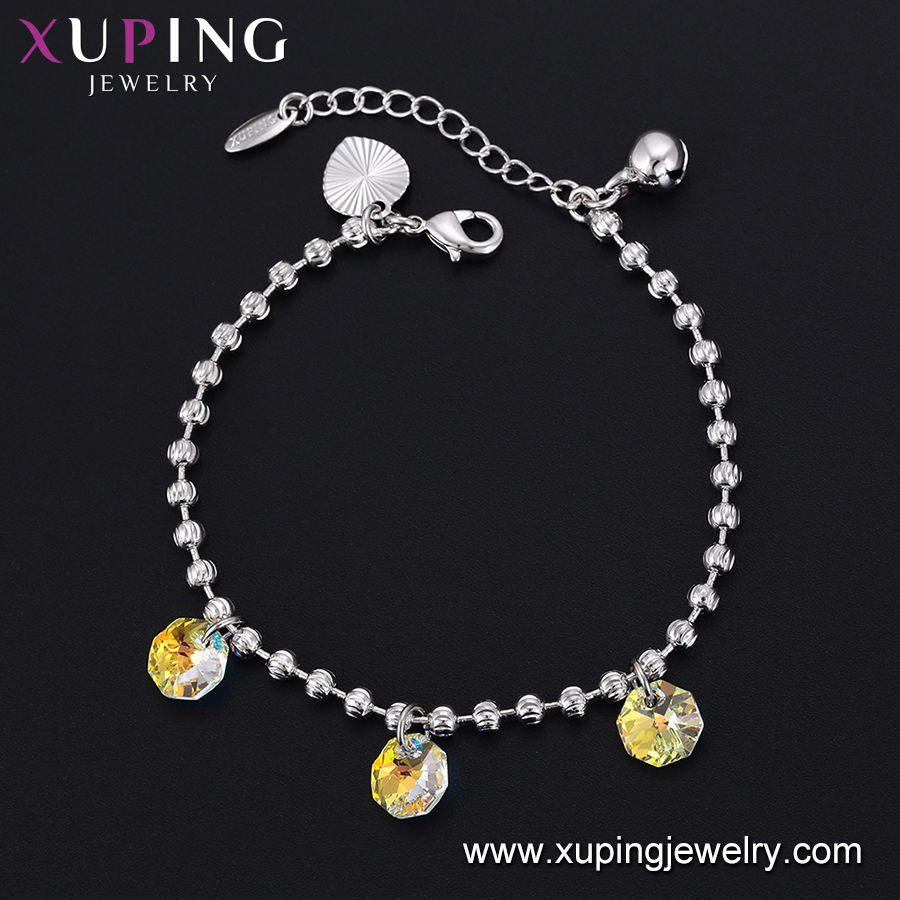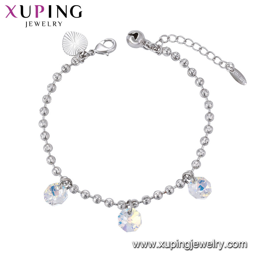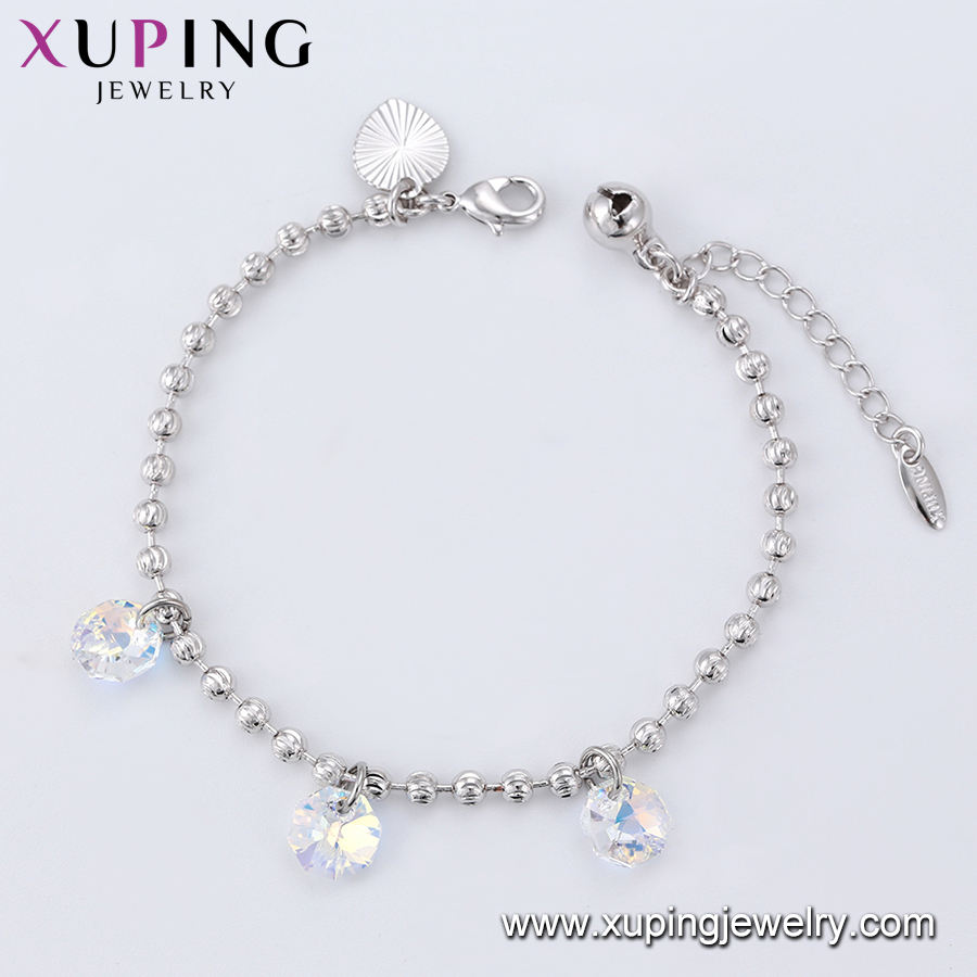 76069 Xuping 2020 Rhodium Color Crystals , Bead and Bell with Pendant Hand Bracelet