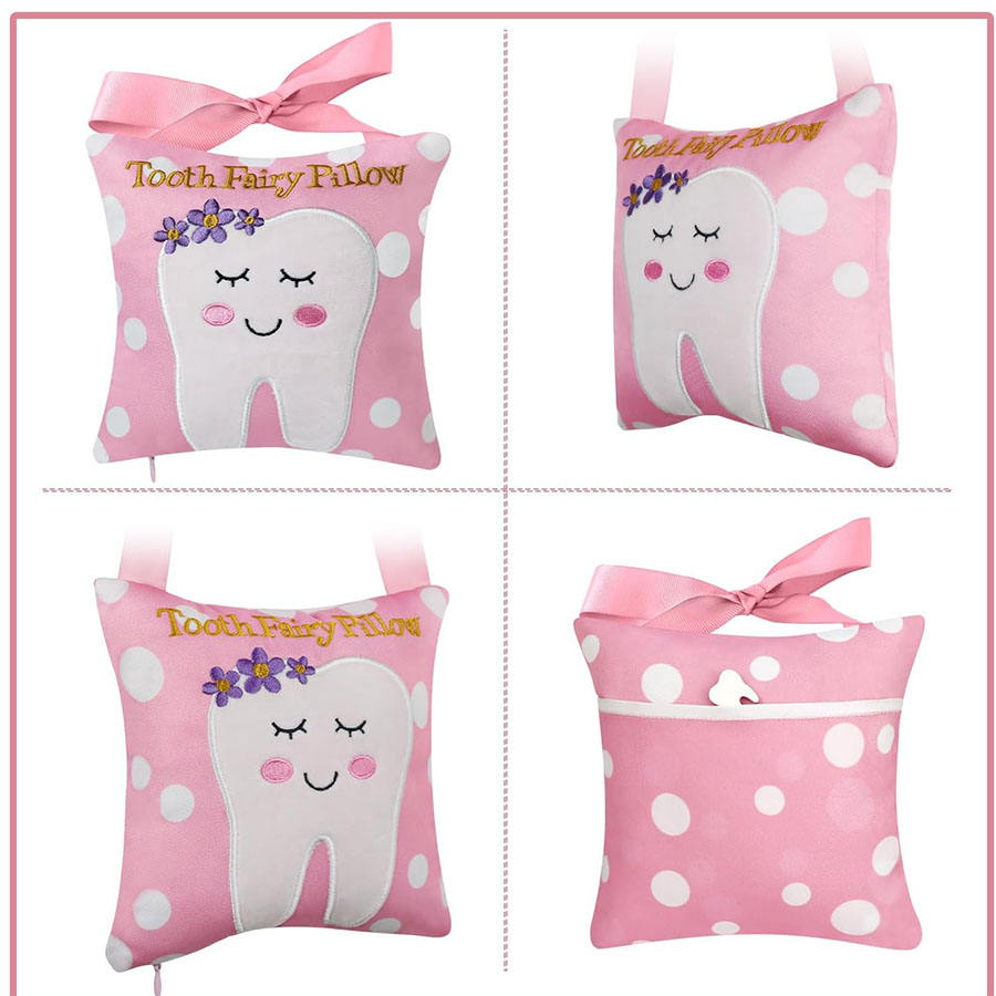 7619 Cuscino Rosa Sorriso Fata con Tasca Sacchetti Regalo per i Bambini Ragazzi Ragazze Facile Appendente Cuscino Lavare i Denti Fata