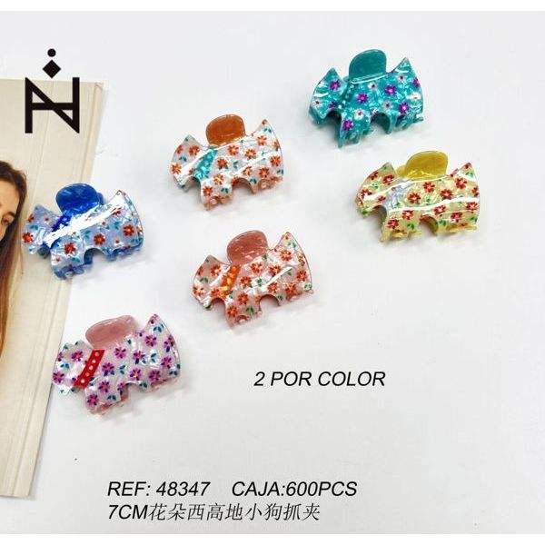 Fermaglio per capelli Angelina Flower West Highland White Terrier, 7 cm, in plastica, a forma di cartone animato, per uso quotidiano, accessorio da donna