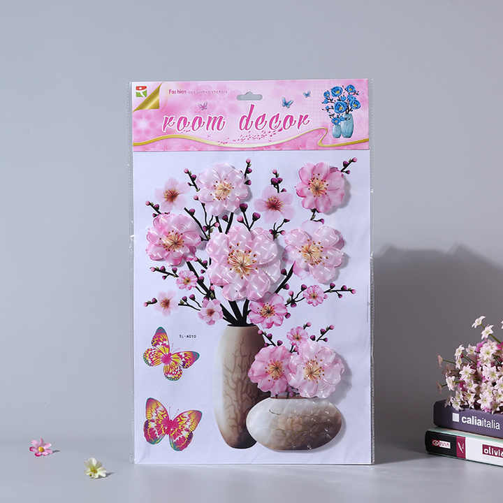 7D 8D home decor cool autoadesivo da parete vaso di fiori per camera da letto