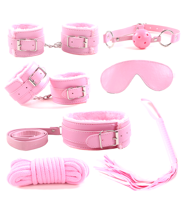 7PCS BDSM Sex Toys Sets Handcuffs Collar with Leather Furry Customized Color for Bondage