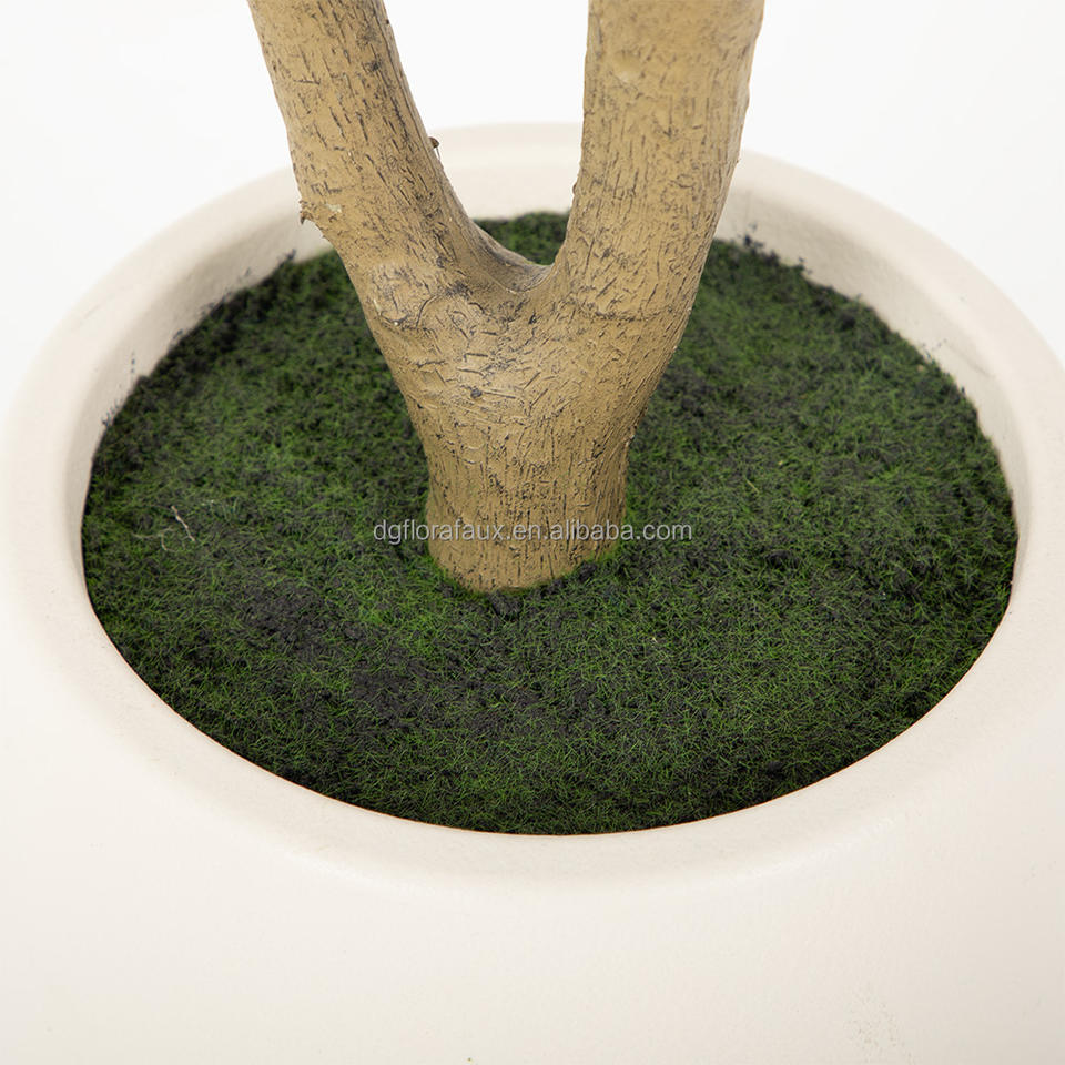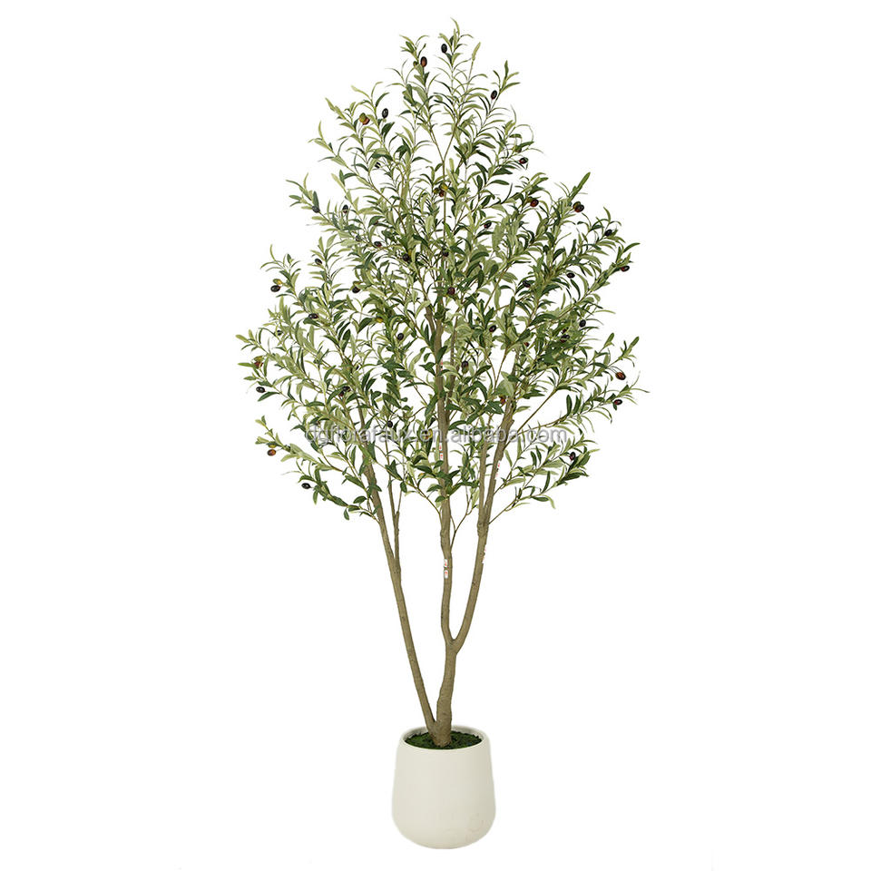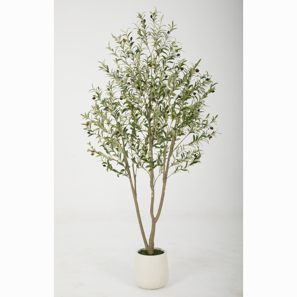 Albero di Ulivo Artificiale in Plastica da 2,1 m con Frutti Realistici, Tronco Naturale, Vaso Bianco Resistente per Decorazione Interna Casa/Ufficio