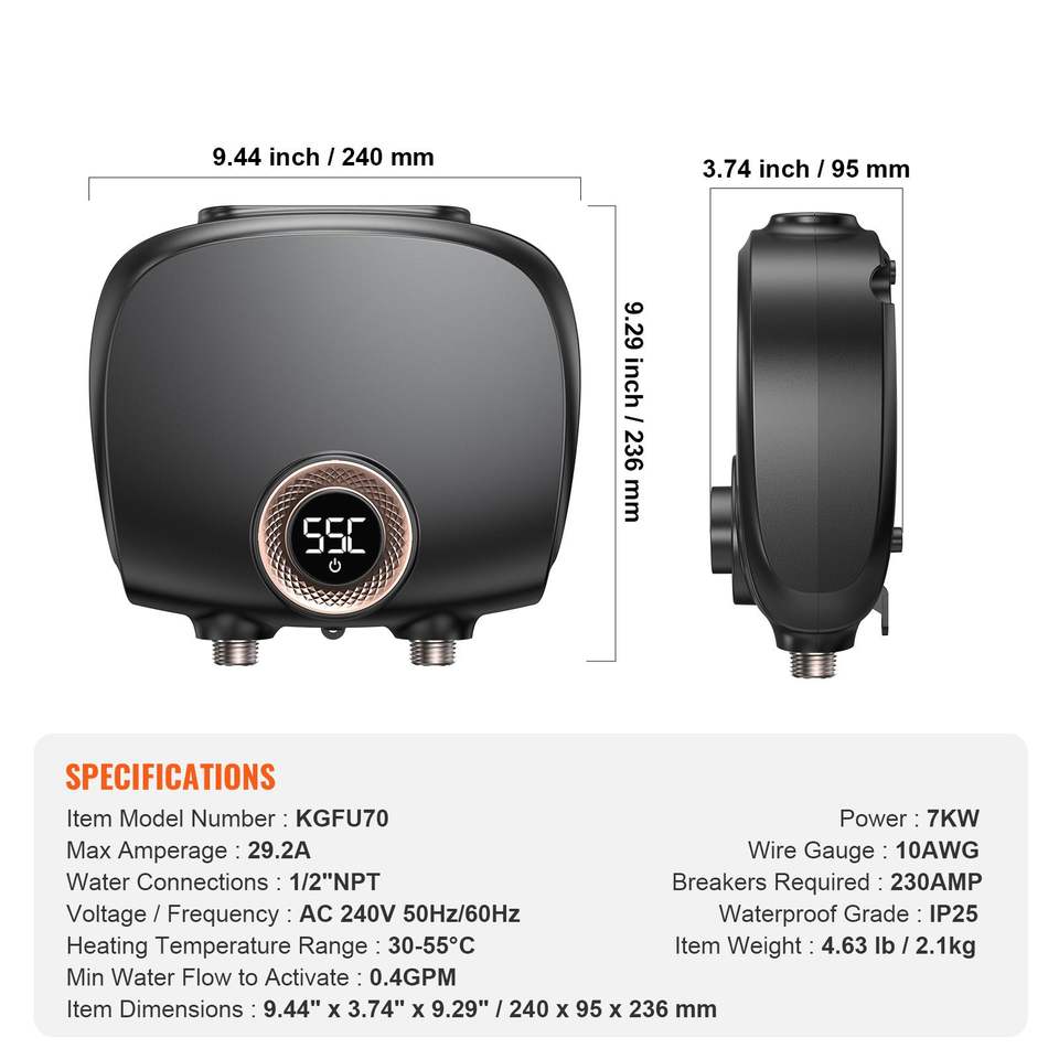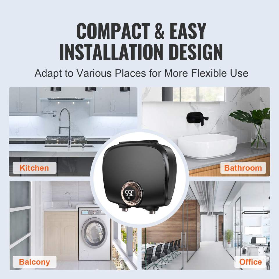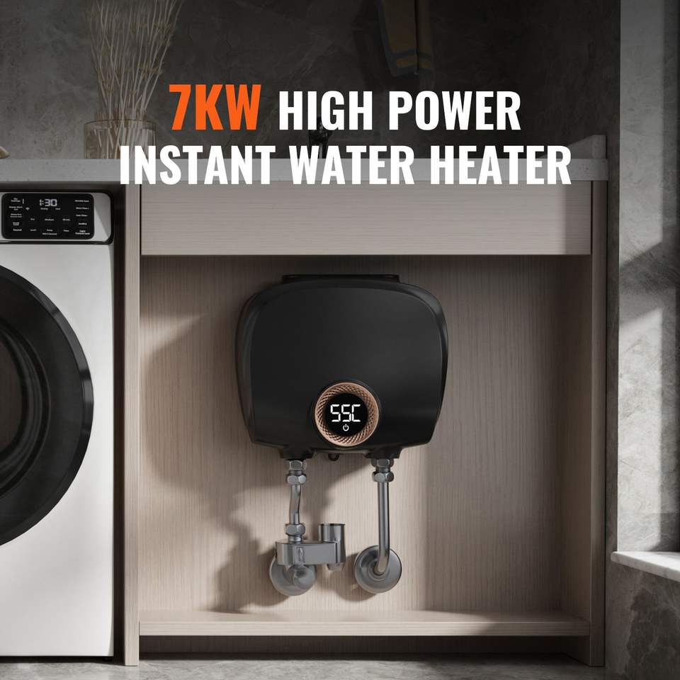 Scaldabagno Elettrico Istantaneo Senza Serbatoio da 7kW con Display Digitale della Temperatura, Facile Installazione