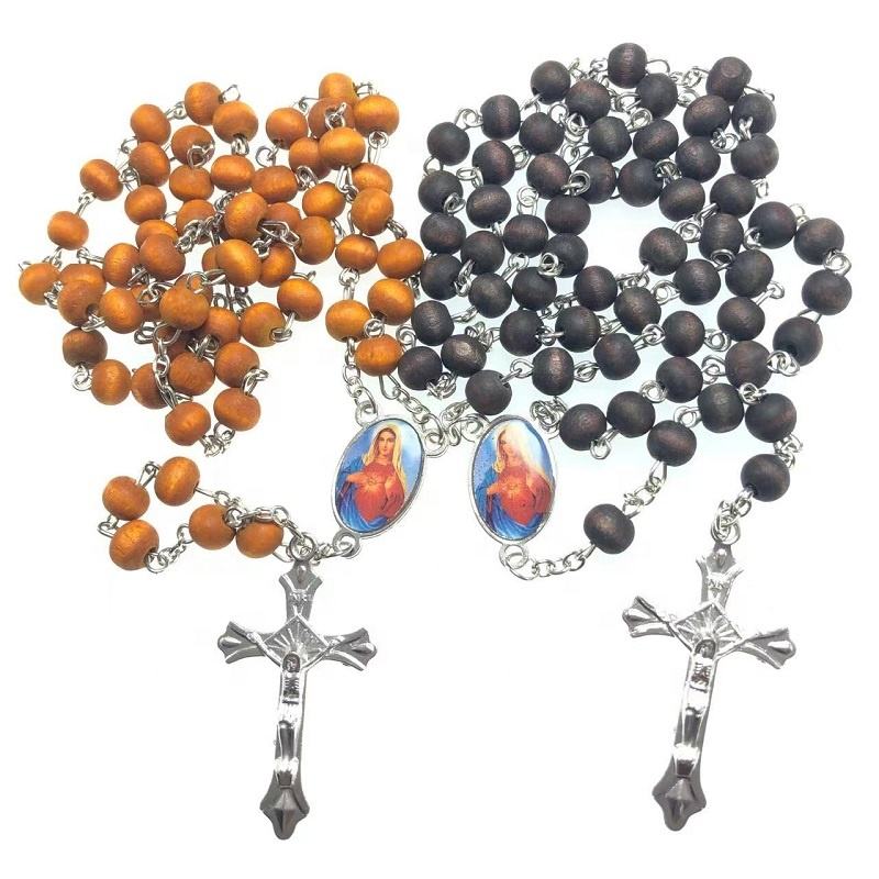 7mm Brown Colors Wood Perfume Rosary Scented Virgin Mary Catholic Necklace With Rose Fragrance