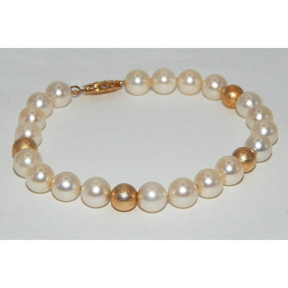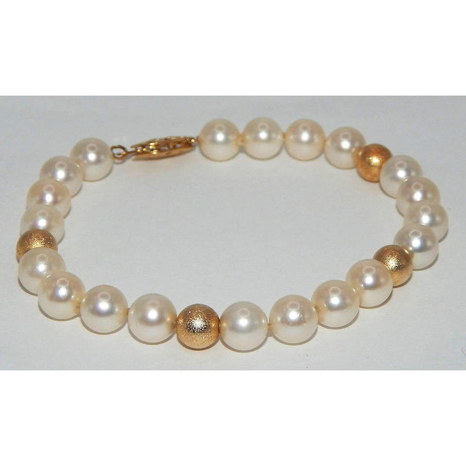 7mm Cultured Pearl Bracelet with Brushed 14k Gold Beads