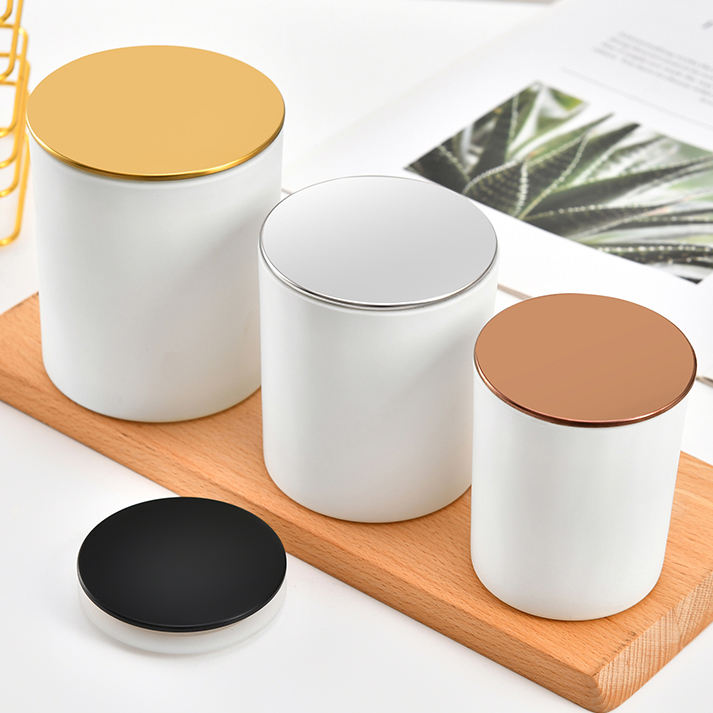 Barattoli e Tazze Portacandela in Vetro Colorato Nero Opaco e Bianco Satinato da 7oz e 10oz con Coperchi Ermetici in Bambù per la Creazione di Candele all'Ingrosso