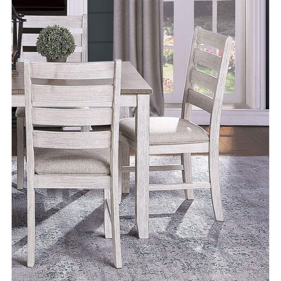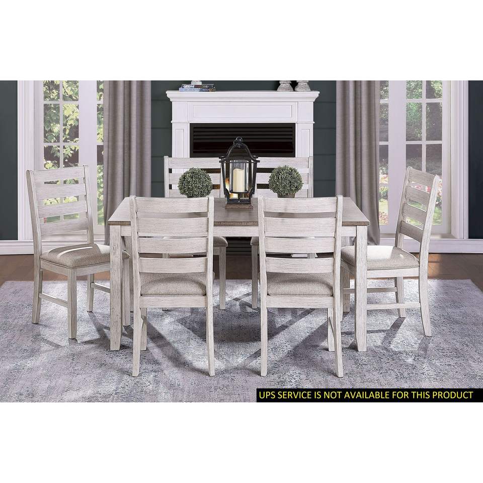 Set da Pranzo Casual 7 Pezzi, Finitura Grigio-Bianco-Marrone, 6 Sedie Laterali in Tessuto e Tavolo Rettangolare in Legno