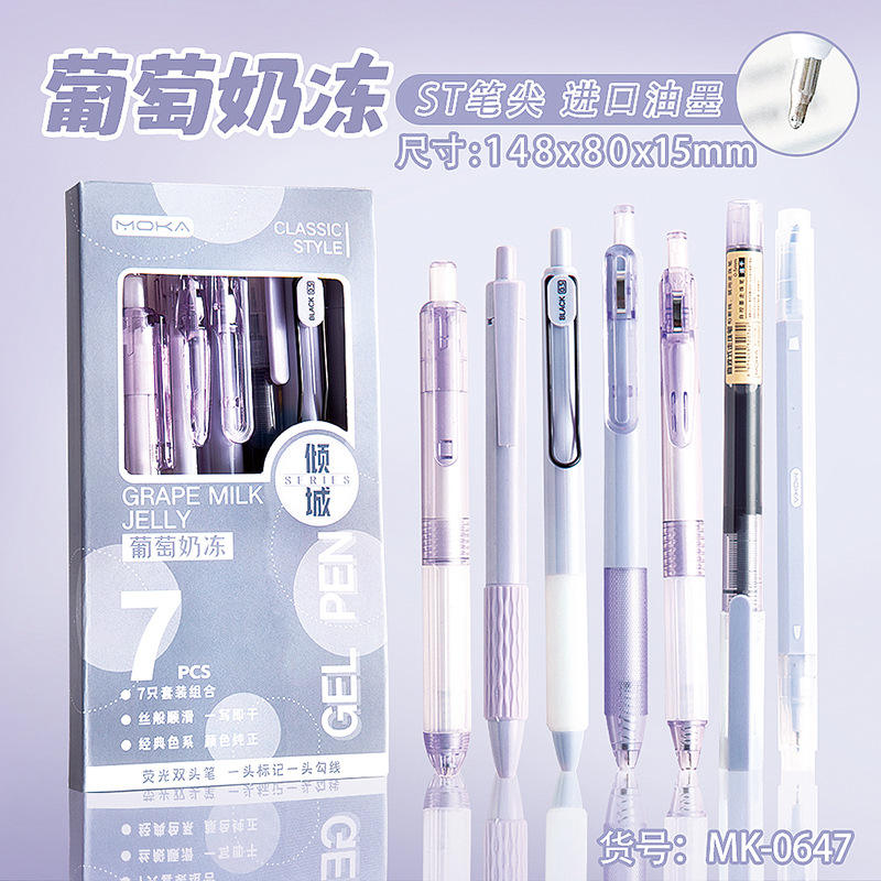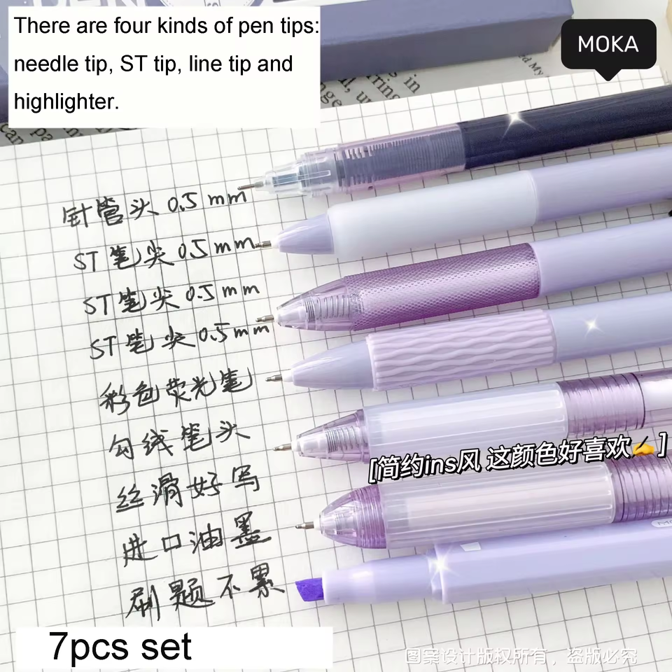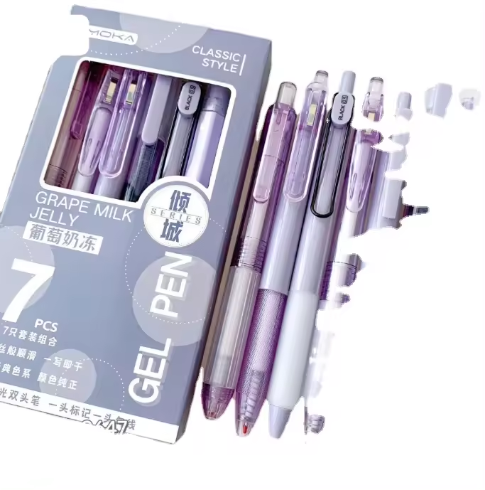 Set di penne gel 7 pz bellissimo retrattile con una penna evidenziatore adatto per l'ufficio scolastico e la scrittura a casa
