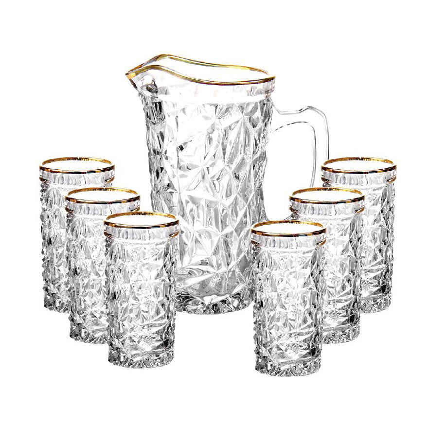 Set da 7 Pezzi in Vetro con Bordo Dorato, Brocca in Vetro da 1000 ml e Bicchiere da 280 ml